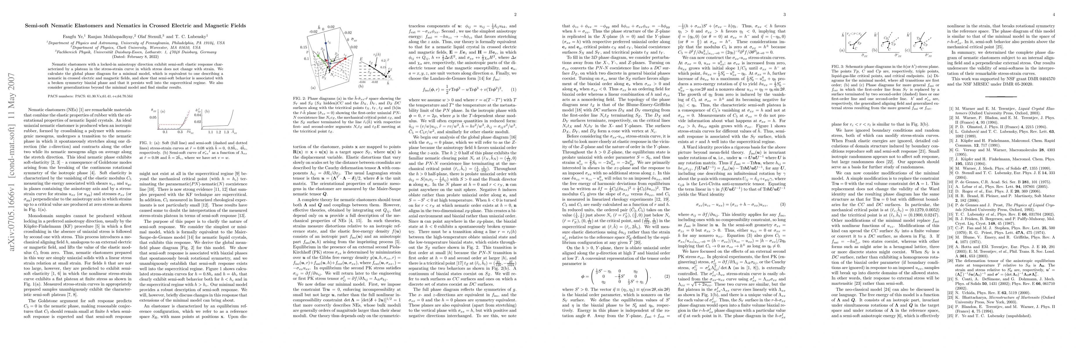 Researchers study a new class of materials called nematic elastomers that exhibit semi-soft behavior when exposed to crossed electric and magnetic fields, showing persistent plateau in stress-strain curve even in supercritical regimes.