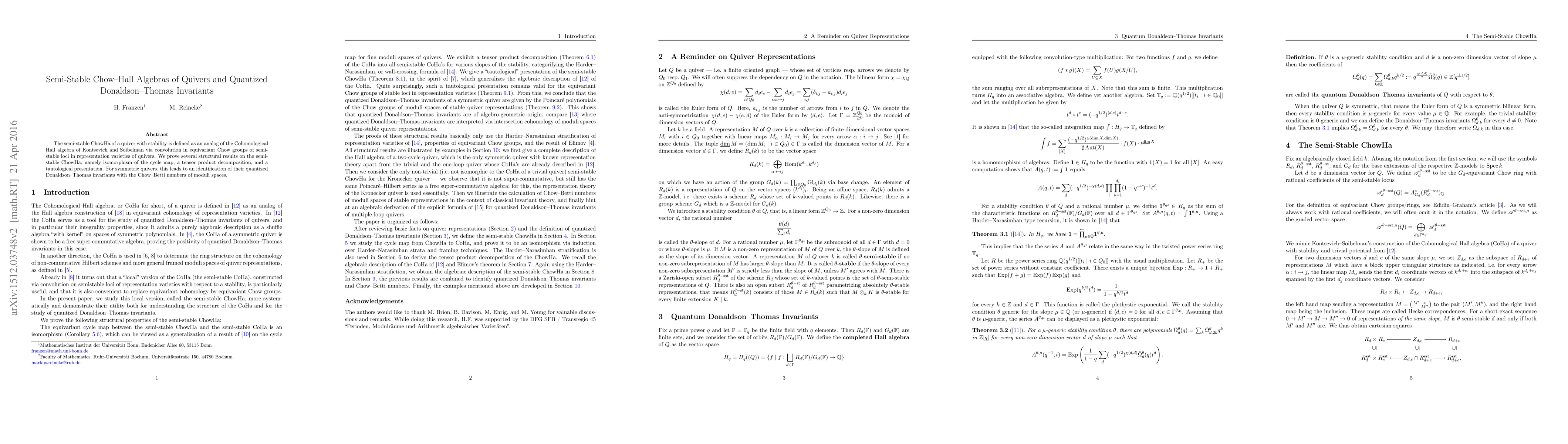 This paper defines semi-stable Chow-Hall algebras of quivers and proves several structural results, including an isomorphism of the cycle map and a tensor product decomposition. It also establishes a connection between these algebras and quantized Donaldson-Thomas invariants for symmetric quivers.