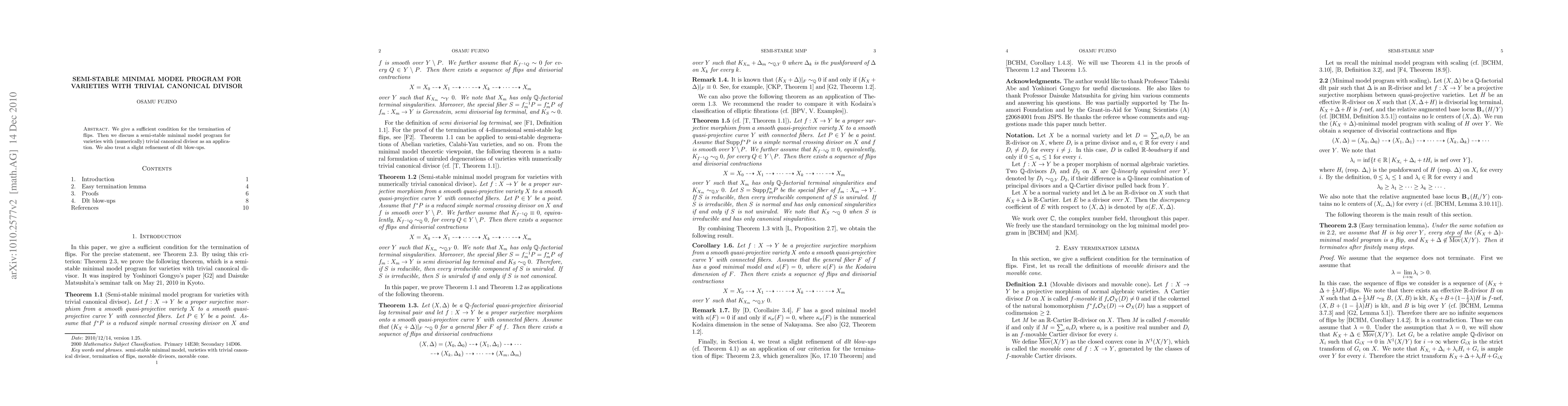 Summary: This paper provides a sufficient condition for the termination of flips and applies it to develop a semi-stable minimal model program for varieties with trivial canonical divisors. It also refines dlt blow-ups in the process.