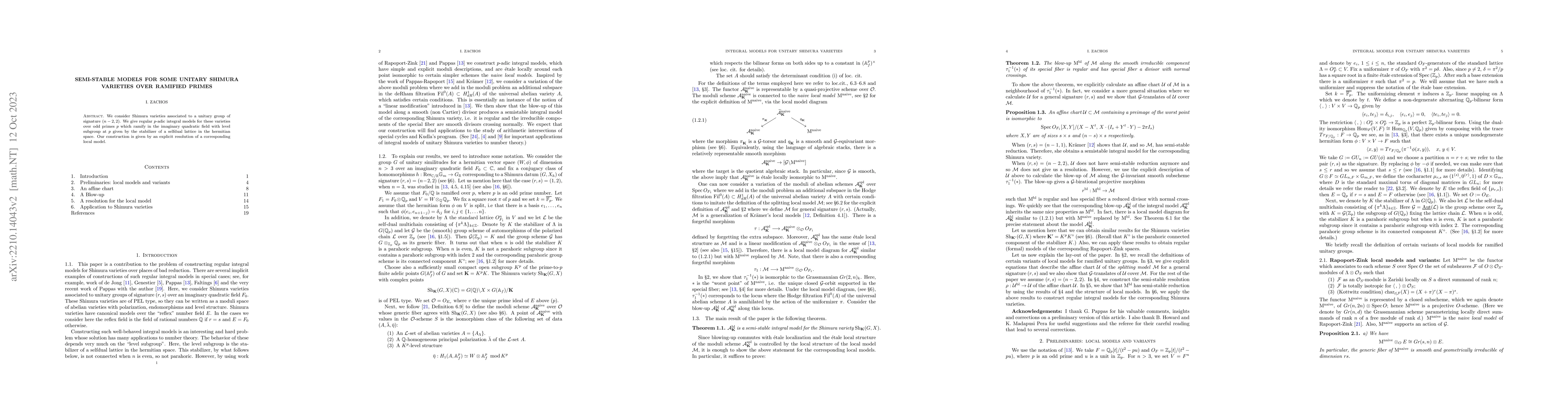 This paper constructs regular $p$-adic integral models for unitary Shimura varieties associated with a unitary group of signature $(2,n-2)$ over ramified primes $p$. The construction involves an explicit resolution of a local model to achieve the desired models.