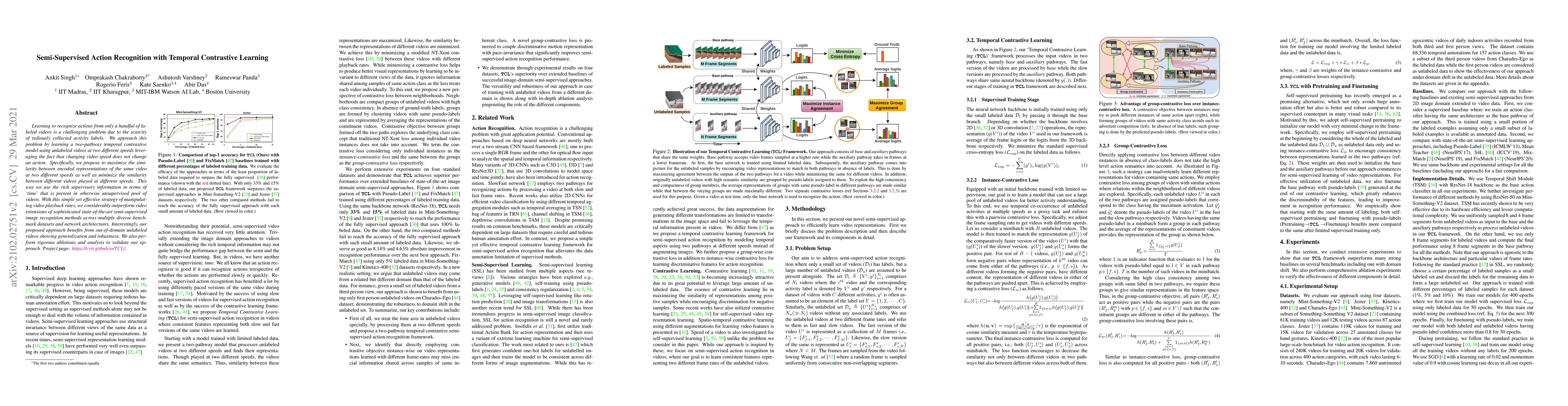 This paper proposes a semi-supervised action recognition method using temporal contrastive learning on unlabeled videos played at different speeds to leverage inherent temporal information. The approach outperforms state-of-the-art semi-supervised methods and demonstrates generalization and robustness with out-of-domain data.
