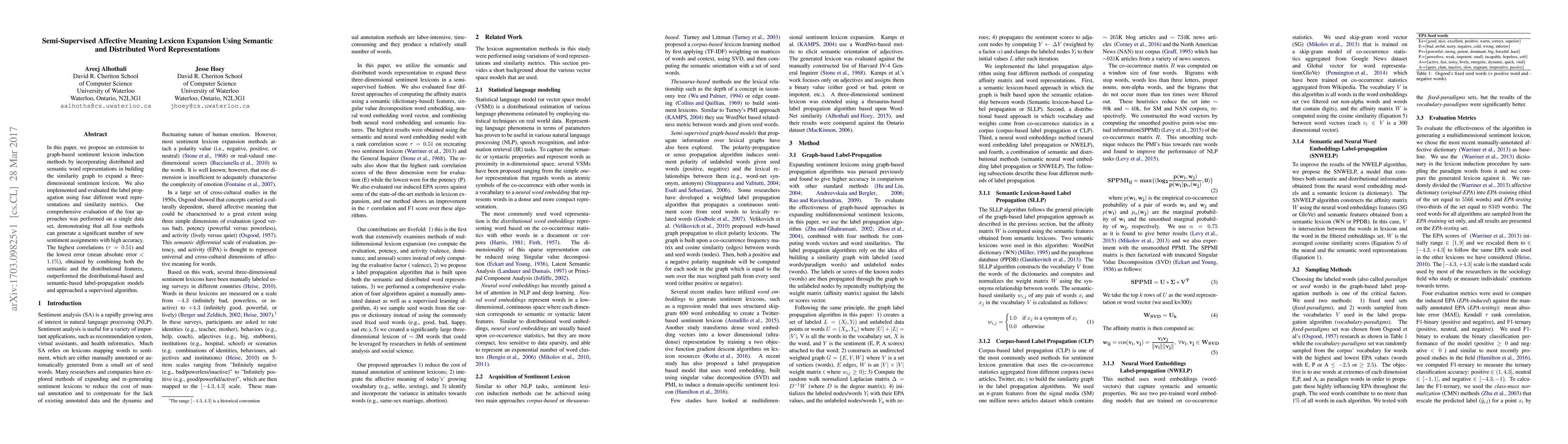 This paper extends graph-based sentiment lexicon induction methods by integrating semantic and distributed word representations to build a three-dimensional sentiment lexicon. The evaluation shows that combining both types of features achieves the highest accuracy and lowest error, outperforming purely semantic or distributional-based approaches.