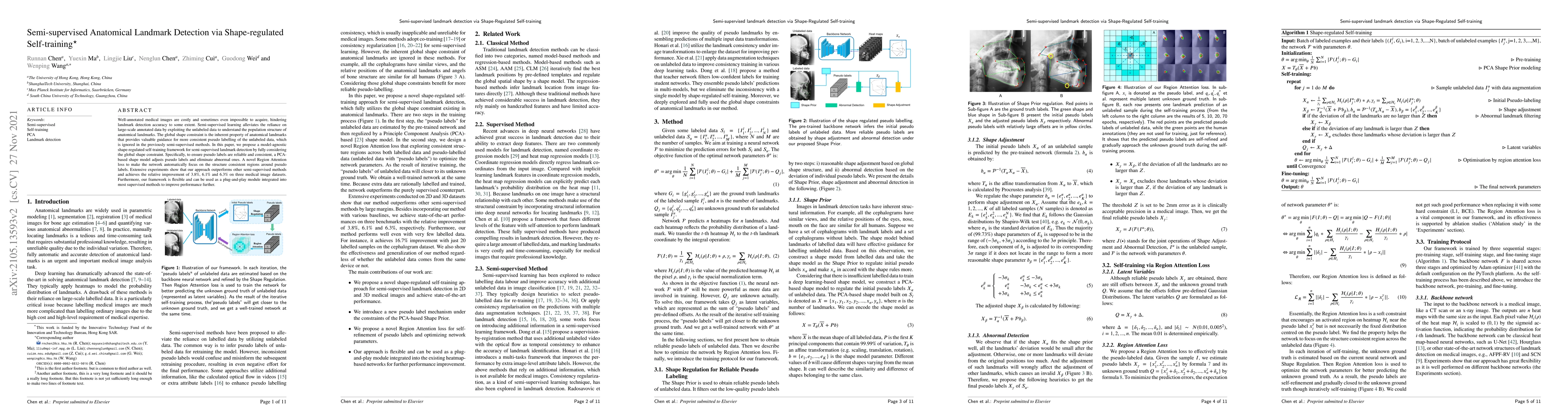 This paper proposes a semi-supervised framework for anatomical landmark detection that leverages unlabeled data through a shape-regulated self-training method, utilizing global shape constraints to improve pseudo label reliability. The approach achieves superior performance on medical image datasets compared to other semi-supervised methods.