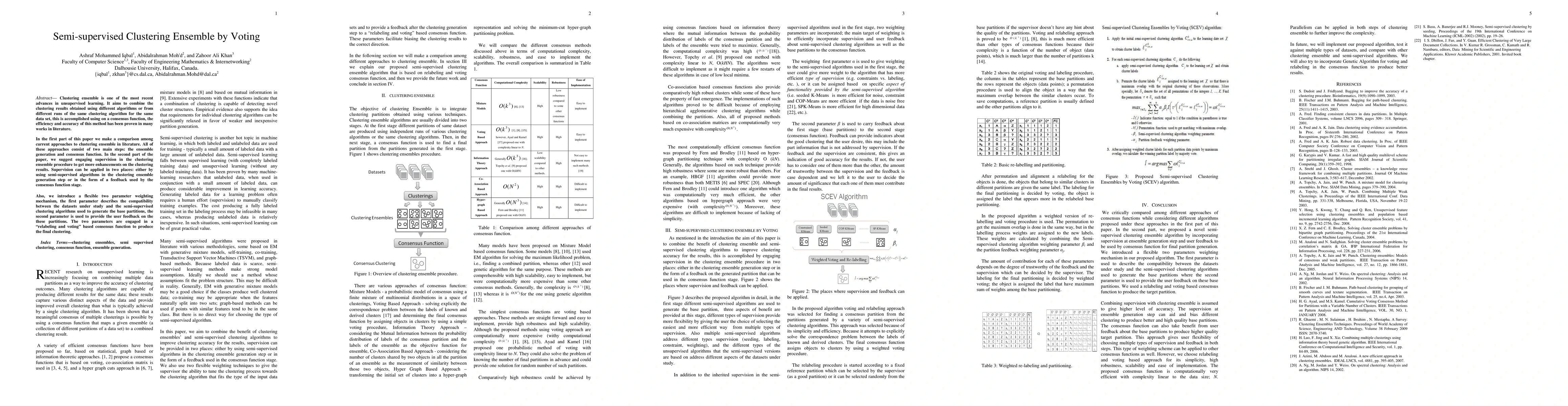 Clustering ensemble is one of the most recent advances in unsupervised learning. It aims to combine the clustering results obtained using different algorithms or from different runs of the same clustering algorithm for the same data set, this is accomplished using on a consensus function, the efficiency and accuracy of this method has been proven in many works in literature. In the first part of this paper we make a comparison among current approaches to clustering ensemble in literature. All of these approaches consist of two main steps: the ensemble generation and consensus function. In the second part of the paper, we suggest engaging supervision in the clustering ensemble procedure to get more enhancements on the clustering results. Supervision can be applied in two places: either by using semi-supervised algorithms in the clustering ensemble generation step or in the form of a feedback used by the consensus function stage. Also, we introduce a flexible two parameter weighting mechanism, the first parameter describes the compatibility between the datasets under study and the semi-supervised clustering algorithms used to generate the base partitions, the second parameter is used to provide the user feedback on the these partitions. The two parameters are engaged in a "relabeling and voting" based consensus function to produce the final clustering.