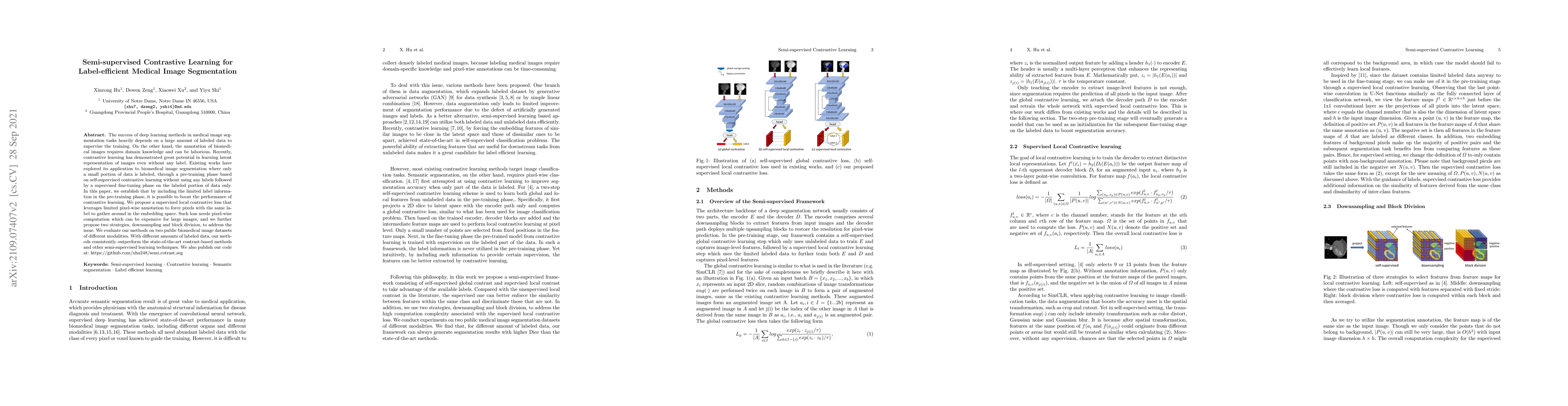 This paper proposes a semi-supervised contrastive learning method for label-efficient medical image segmentation, leveraging limited pixel-wise annotations during pre-training to enhance performance. It introduces a supervised local contrastive loss and strategies like downsampling and block division to manage computational costs, achieving superior results on two biomedical datasets compared to existing methods.