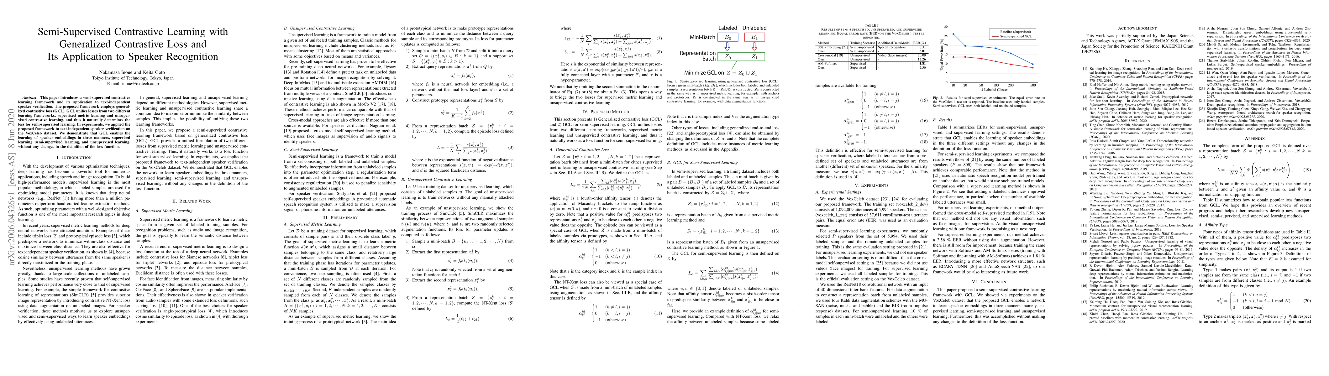 This paper presents a semi-supervised contrastive learning framework with generalized contrastive loss (GCL) applied to text-independent speaker verification, showing its effectiveness in supervised, semi-supervised, and unsupervised learning without altering the loss function. The approach was tested on the VoxCeleb dataset.