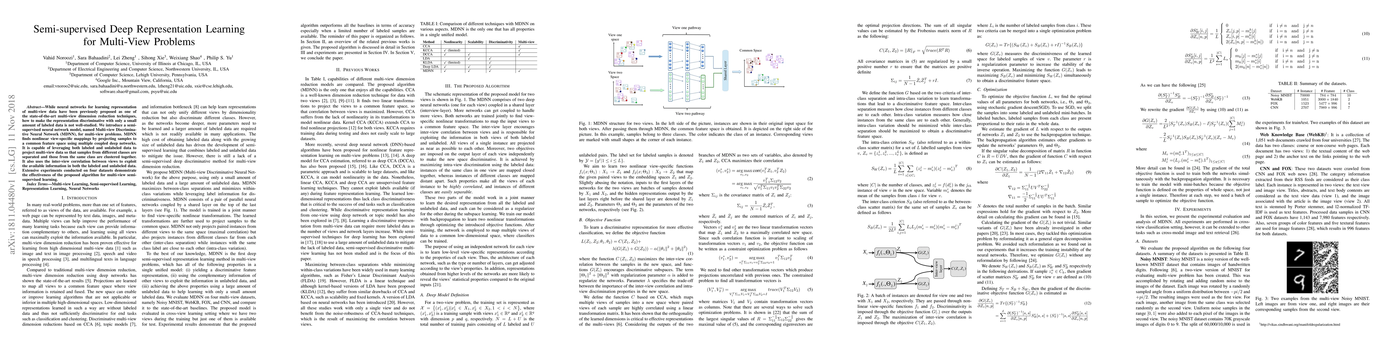 This paper proposes a semi-supervised neural network model called Multi-view Discriminative Neural Network (MDNN) to enhance representation learning for multi-view data using both labeled and unlabeled data. MDNN leverages inter-view correlations and projects samples to a common feature space to improve class separability and intra-class clustering, demonstrated through successful experiments on four datasets.