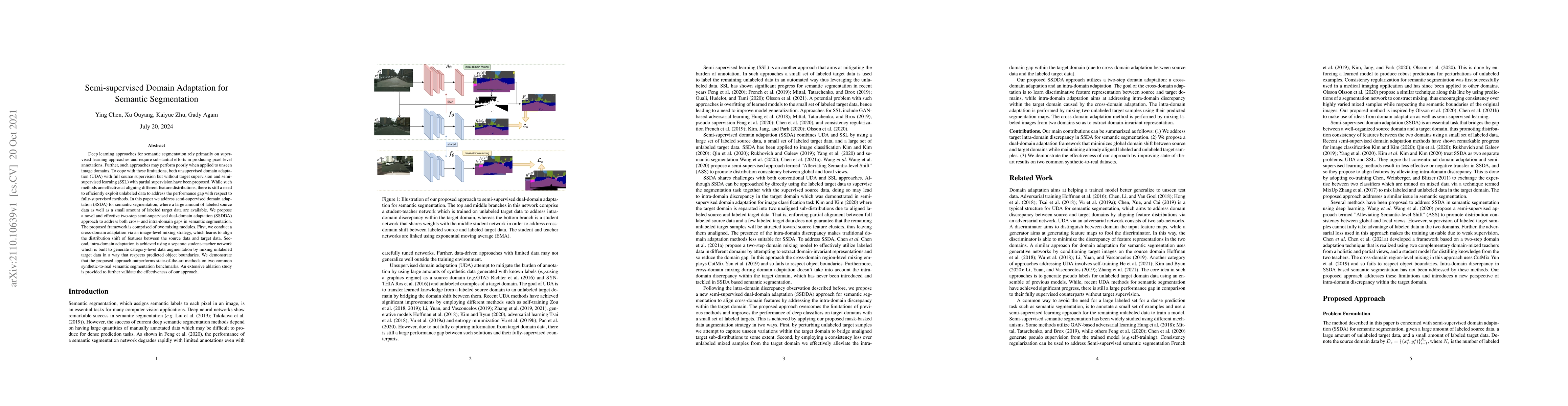 This paper proposes a semi-supervised dual-domain adaptation approach (SSDDA) for semantic segmentation that leverages labeled source data and a small amount of labeled target data, combining cross-domain adaptation and intra-domain adaptation to bridge domain gaps. The method outperforms state-of-the-art techniques on synthetic-to-real benchmarks and is validated through an extensive ablation study.