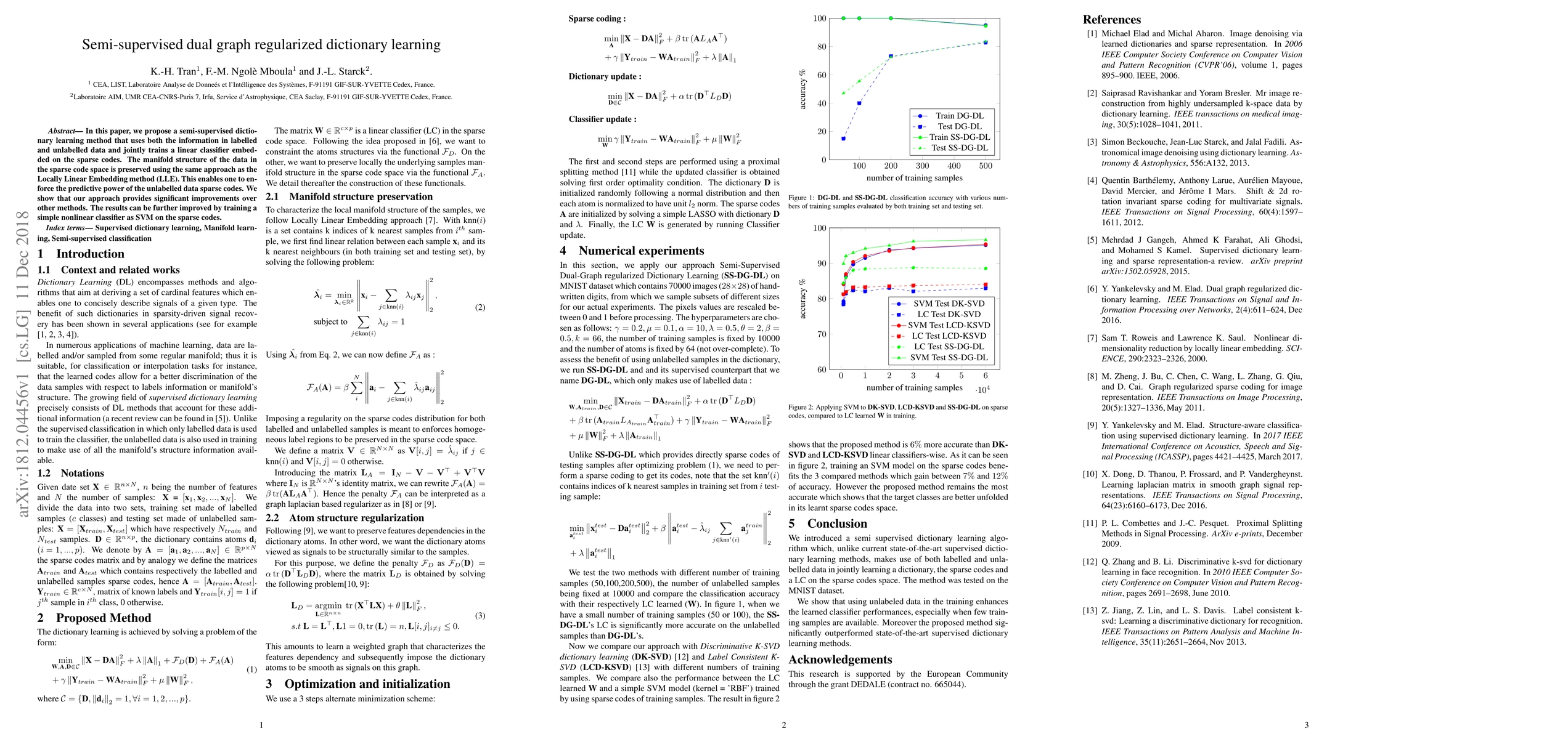 In this paper, we propose a semi-supervised dictionary learning method that uses both the information in labelled and unlabelled data and jointly trains a linear classifier embedded on the sparse codes. The manifold structure of the data in the sparse code space is preserved using the same approach as the Locally Linear Embedding method (LLE). This enables one to enforce the predictive power of the unlabelled data sparse codes. We show that our approach provides significant improvements over other methods. The results can be further improved by training a simple nonlinear classifier as SVM on the sparse codes.