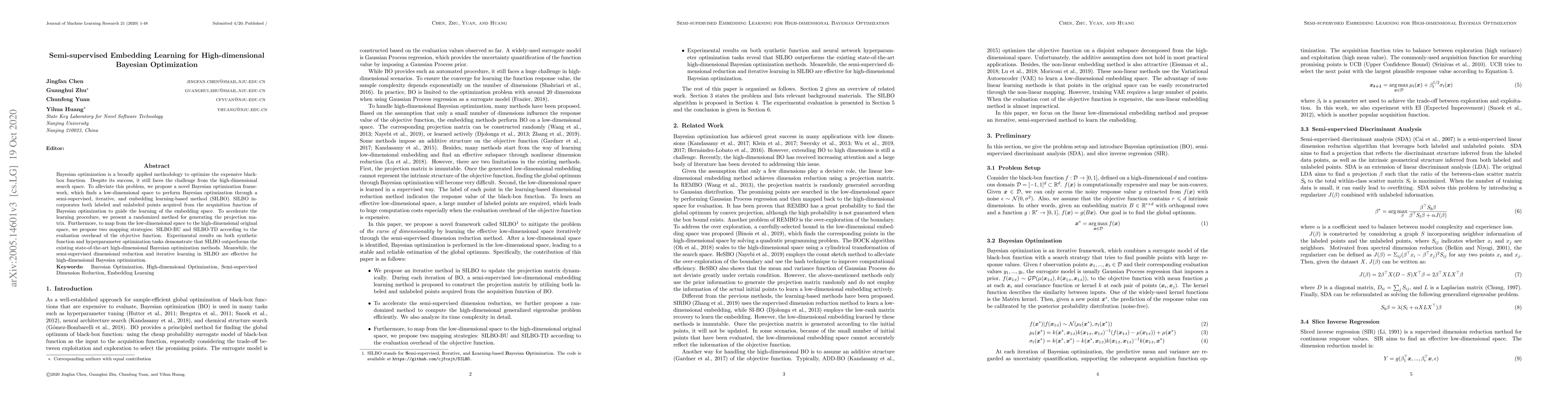 The paper proposes SILBO, a novel Bayesian optimization framework that uses semi-supervised embedding learning to tackle high-dimensional search spaces. It iteratively reduces dimensions and incorporates both labeled and unlabeled data to guide the embedding process, achieving better performance than existing methods.
