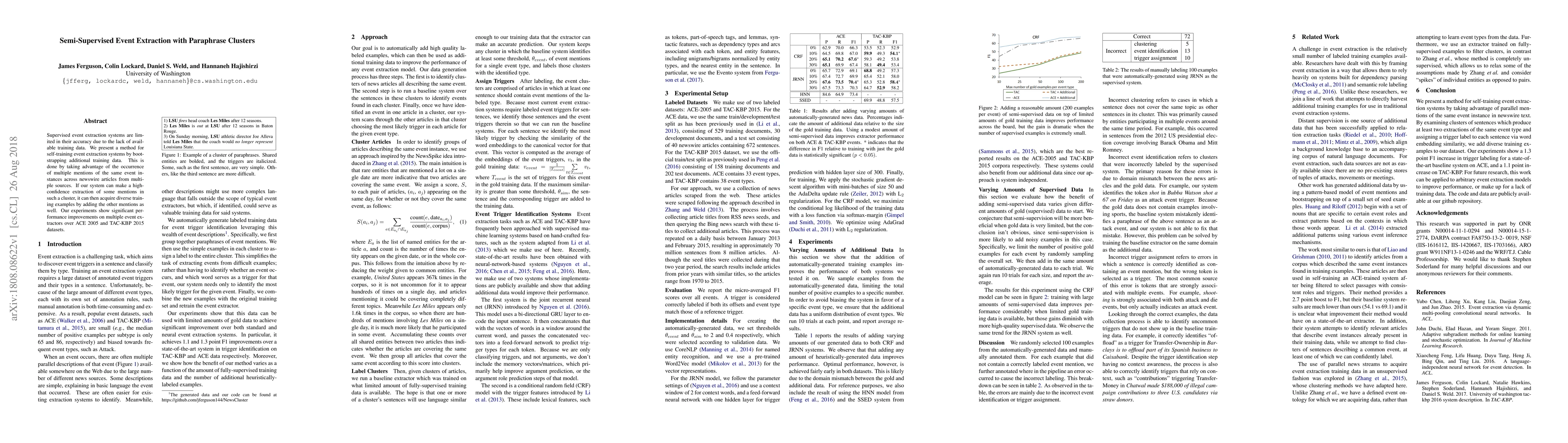 Supervised event extraction systems are limited in their accuracy due to the lack of available training data. We present a method for self-training event extraction systems by bootstrapping additional training data. This is done by taking advantage of the occurrence of multiple mentions of the same event instances across newswire articles from multiple sources. If our system can make a highconfidence extraction of some mentions in such a cluster, it can then acquire diverse training examples by adding the other mentions as well. Our experiments show significant performance improvements on multiple event extractors over ACE 2005 and TAC-KBP 2015 datasets.