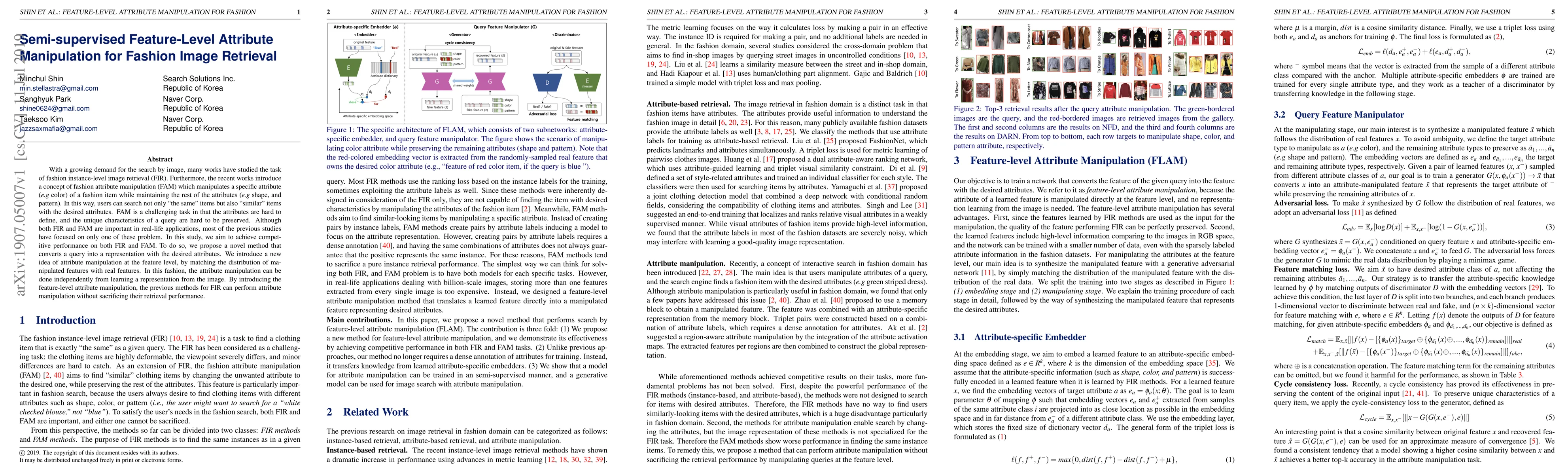 This paper proposes a semi-supervised method for fashion instance-level image retrieval that also enables feature-level attribute manipulation, allowing users to search for similar items with modified attributes while preserving other features. The approach matches the distribution of manipulated features to real features, maintaining retrieval performance.