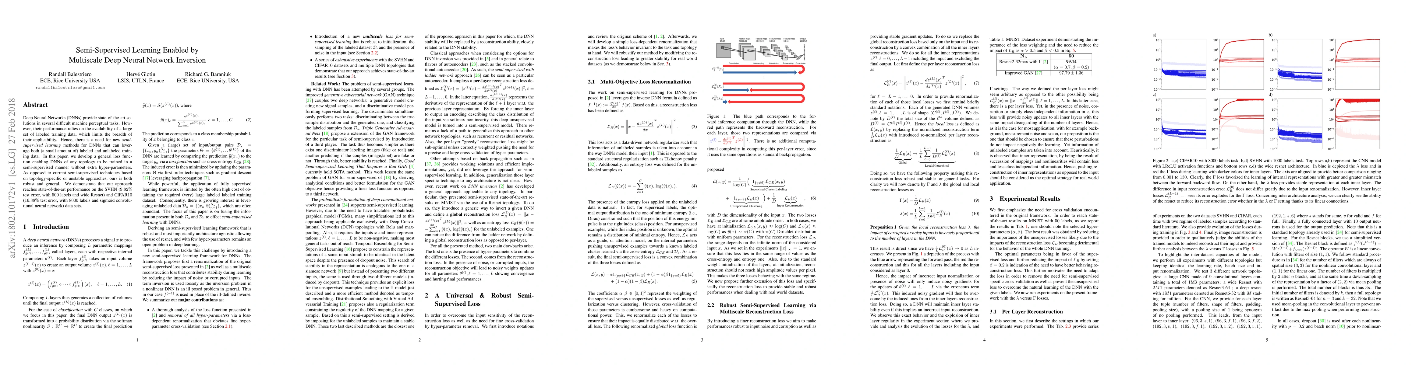 Deep Neural Networks (DNNs) provide state-of-the-art solutions in several difficult machine perceptual tasks. However, their performance relies on the availability of a large set of labeled training data, which limits the breadth of their applicability. Hence, there is a need for new {\em semi-supervised learning} methods for DNNs that can leverage both (a small amount of) labeled and unlabeled training data. In this paper, we develop a general loss function enabling DNNs of any topology to be trained in a semi-supervised manner without extra hyper-parameters. As opposed to current semi-supervised techniques based on topology-specific or unstable approaches, ours is both robust and general. We demonstrate that our approach reaches state-of-the-art performance on the SVHN ($9.82\%$ test error, with $500$ labels and wide Resnet) and CIFAR10 (16.38% test error, with 8000 labels and sigmoid convolutional neural network) data sets.