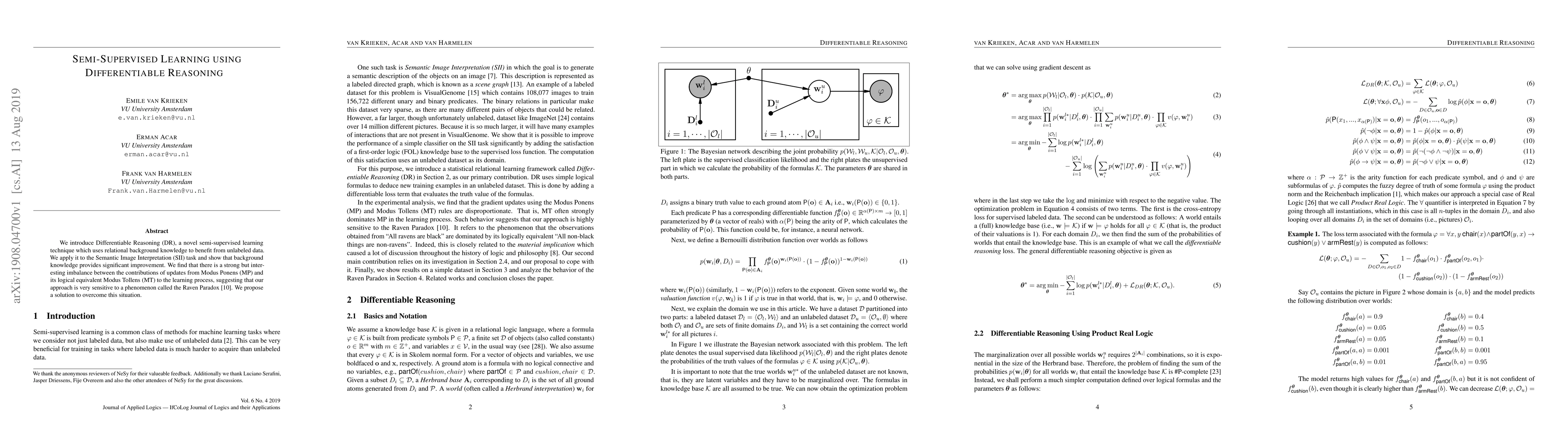 We introduce Differentiable Reasoning (DR), a novel semi-supervised learning technique which uses relational background knowledge to benefit from unlabeled data. We apply it to the Semantic Image Interpretation (SII) task and show that background knowledge provides significant improvement. We find that there is a strong but interesting imbalance between the contributions of updates from Modus Ponens (MP) and its logical equivalent Modus Tollens (MT) to the learning process, suggesting that our approach is very sensitive to a phenomenon called the Raven Paradox. We propose a solution to overcome this situation.