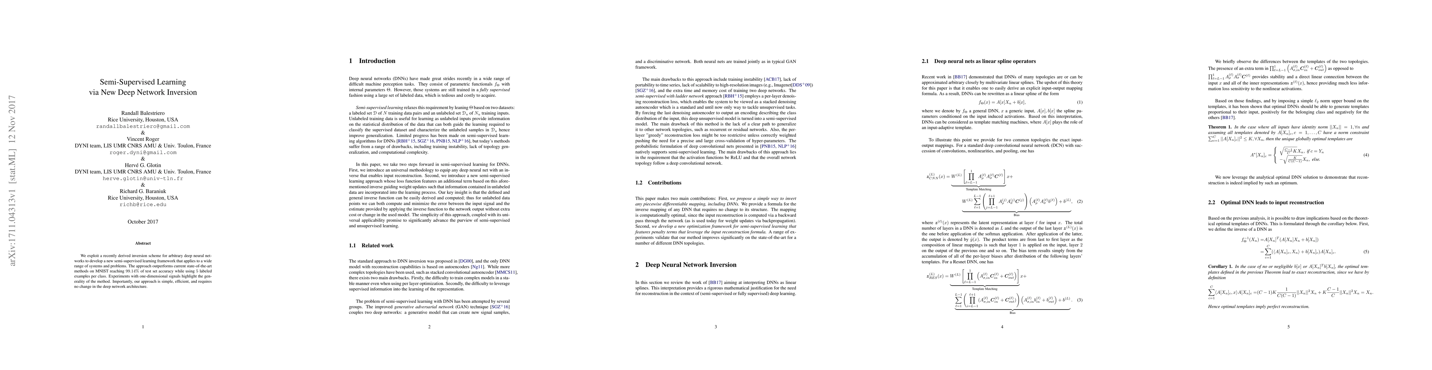 We exploit a recently derived inversion scheme for arbitrary deep neural networks to develop a new semi-supervised learning framework that applies to a wide range of systems and problems. The approach outperforms current state-of-the-art methods on MNIST reaching $99.14\%$ of test set accuracy while using $5$ labeled examples per class. Experiments with one-dimensional signals highlight the generality of the method. Importantly, our approach is simple, efficient, and requires no change in the deep network architecture.