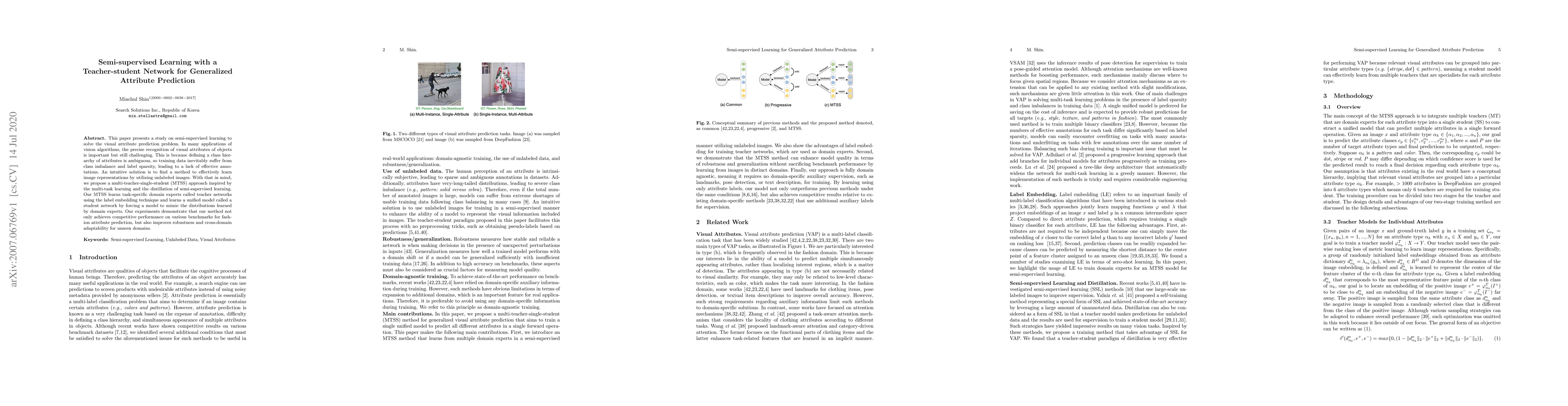 This paper proposes a semi-supervised learning method called MTSS for visual attribute prediction, utilizing multiple teacher networks and a single student network to effectively learn from both labeled and unlabeled data. The approach demonstrates competitive performance and improved robustness on fashion attribute benchmarks.