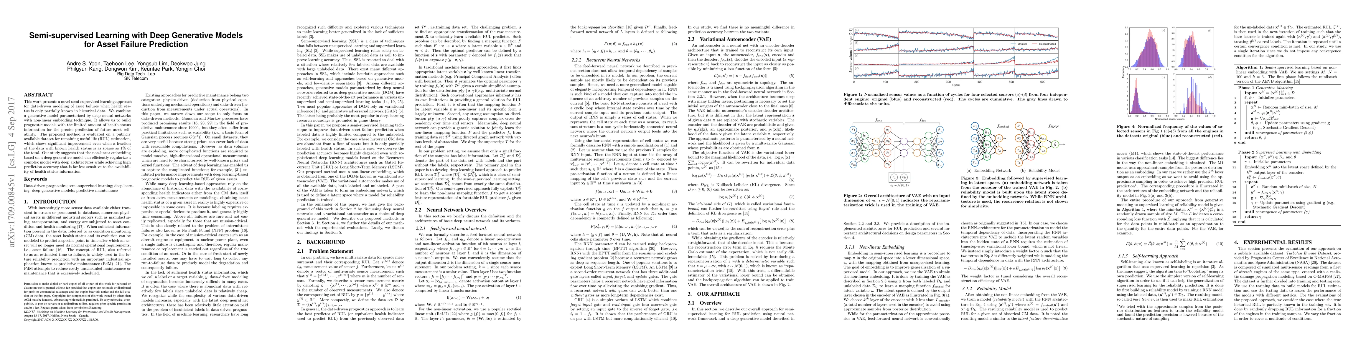 This paper introduces a semi-supervised learning method combining deep generative models and non-linear embedding for predicting asset failures with limited health status data. The approach shows significant improvement in remaining useful life estimation, even with sparse labeled data, demonstrating high prediction accuracy.