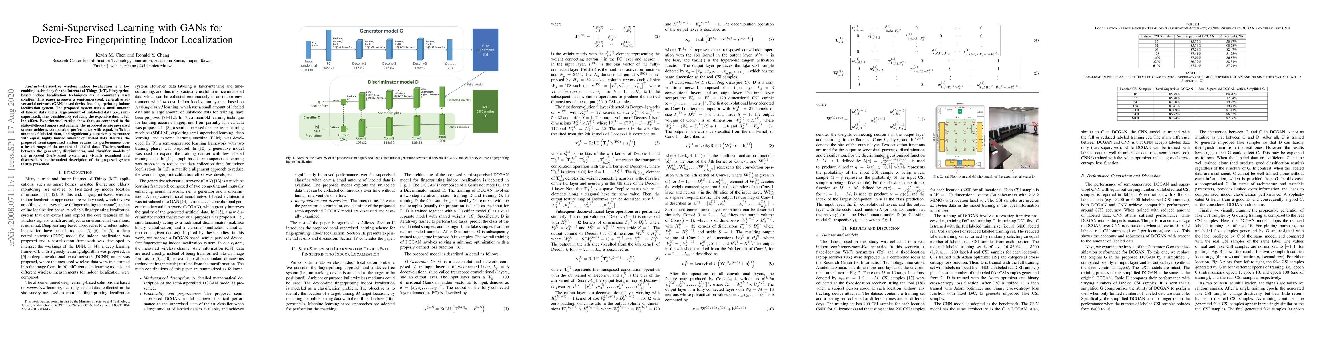 This paper proposes a semi-supervised GAN-based system for device-free fingerprinting indoor localization, leveraging both labeled and unlabeled data to reduce labeling effort. The system achieves comparable performance with limited labeled data compared to supervised methods.