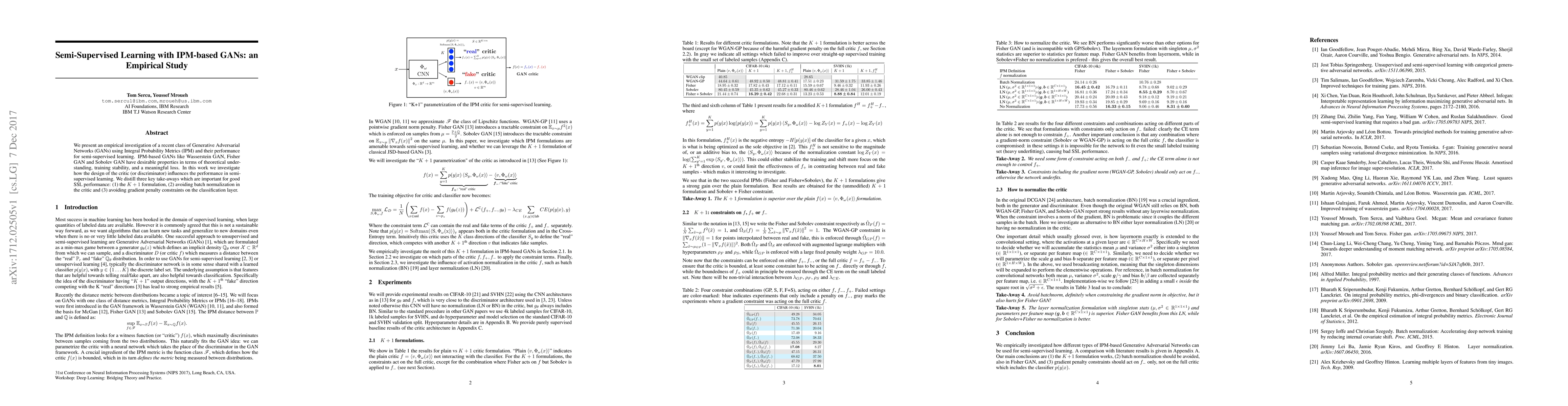 This paper investigates how design choices in IPM-based GANs impact semi-supervised learning performance, highlighting key takeaways for improved results including the K+1 formulation, avoiding batch normalization in the critic, and minimizing gradient penalty constraints on the classification layer.