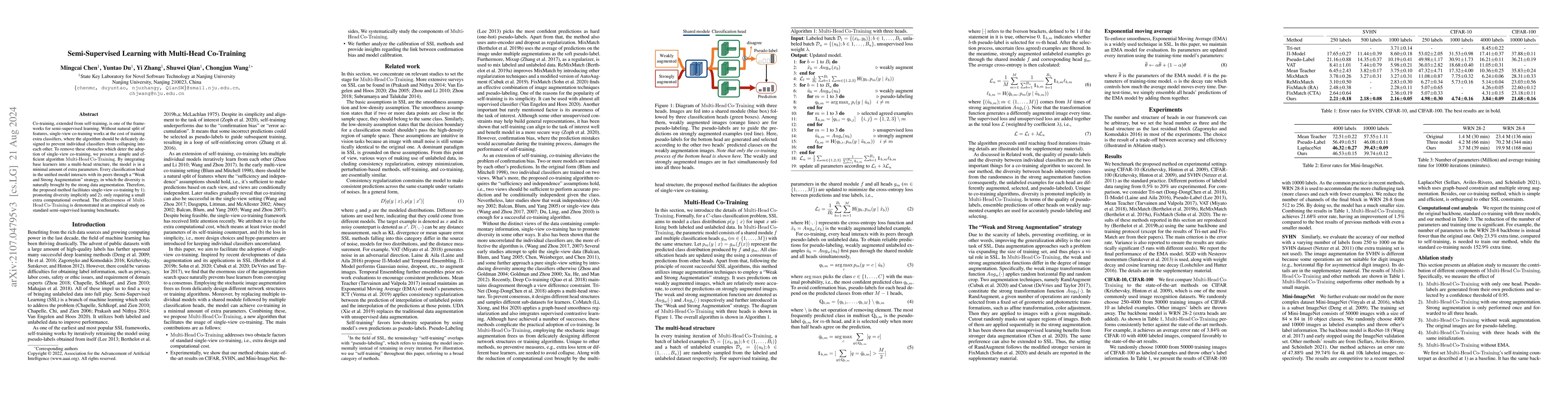 The paper proposes Multi-Head Co-Training, a semi-supervised learning approach that integrates base learners into a multi-head structure to promote diversity implicitly and with minimal extra computational cost. The method utilizes "Weak and Strong Augmentation" to enhance feature diversity, demonstrating effectiveness on standard benchmarks.