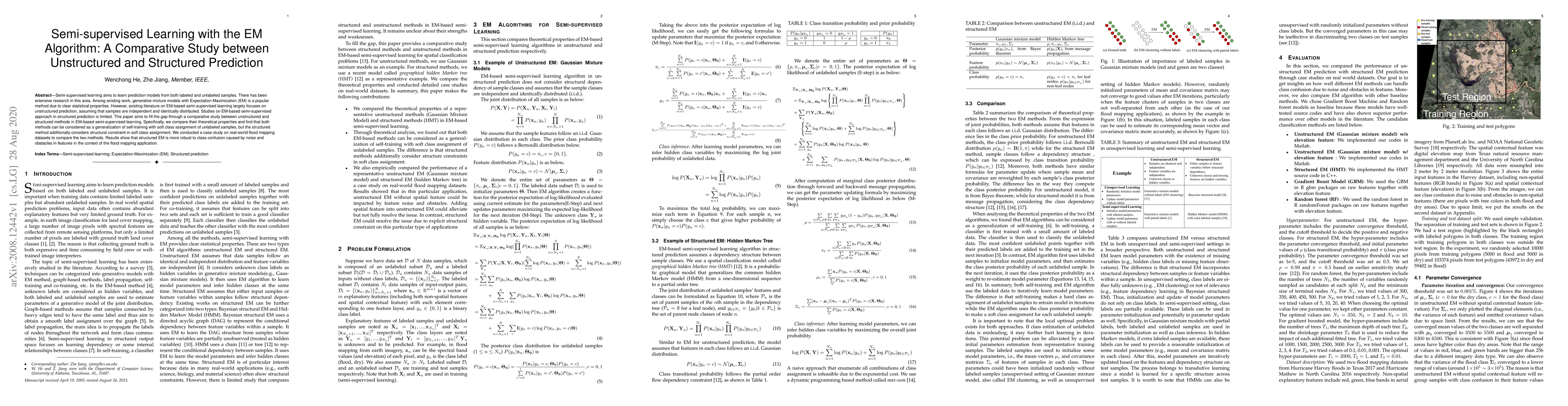 This paper compares EM-based semi-supervised learning methods for unstructured versus structured prediction, finding that structured methods incorporate additional constraints that improve robustness, as demonstrated through a case study on flood mapping.