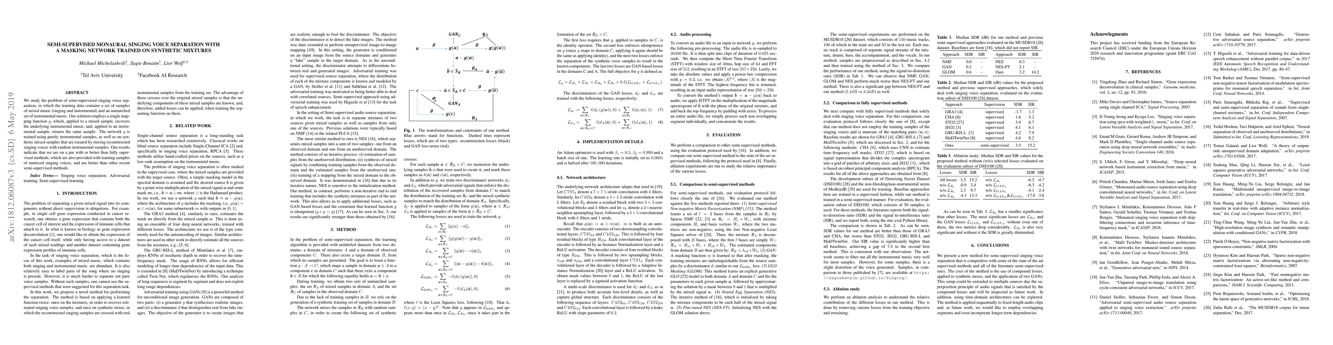 Researchers developed a semi-supervised singing voice separation method that matches fully supervised methods in performance, using synthetic mixed samples to train a single masking network.