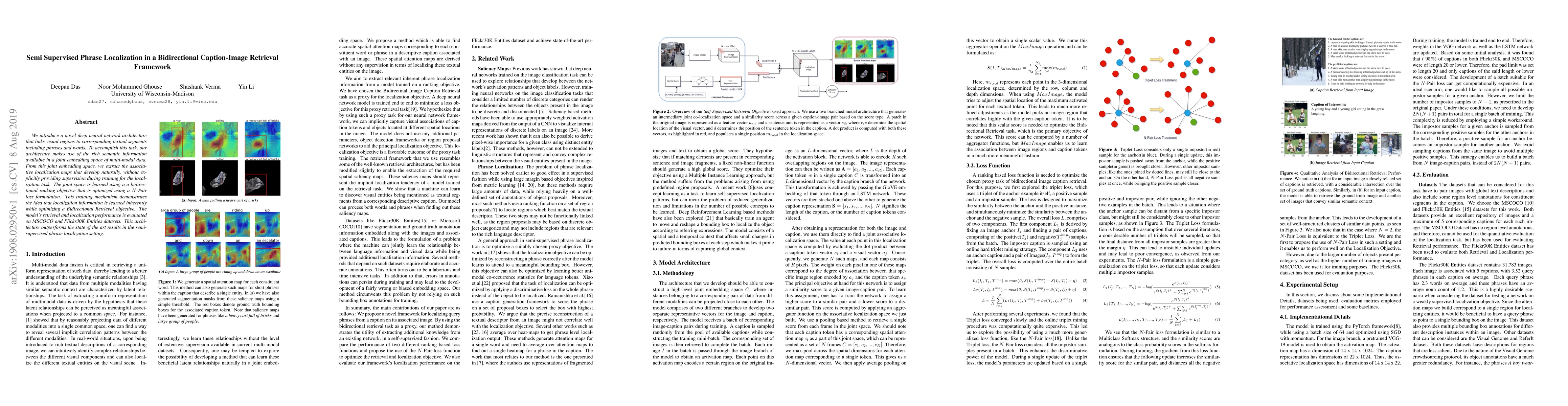 We introduce a novel deep neural network architecture that links visual regions to corresponding textual segments including phrases and words. To accomplish this task, our architecture makes use of the rich semantic information available in a joint embedding space of multi-modal data. From this joint embedding space, we extract the associative localization maps that develop naturally, without explicitly providing supervision during training for the localization task. The joint space is learned using a bidirectional ranking objective that is optimized using a $N$-Pair loss formulation. This training mechanism demonstrates the idea that localization information is learned inherently while optimizing a Bidirectional Retrieval objective. The model's retrieval and localization performance is evaluated on MSCOCO and Flickr30K Entities datasets. This architecture outperforms the state of the art results in the semi-supervised phrase localization setting.