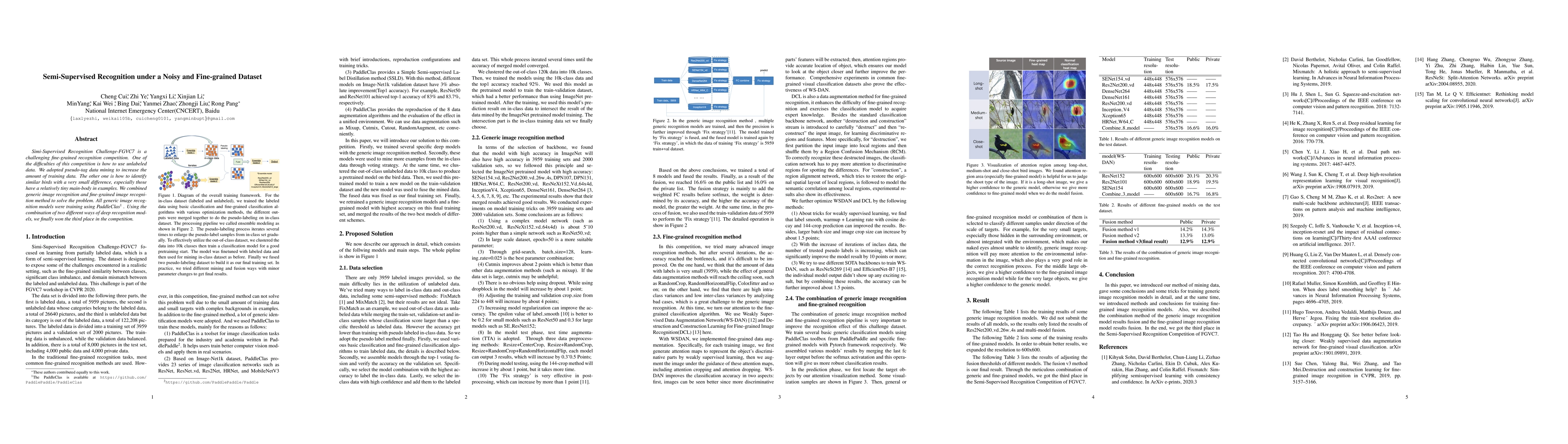 Simi-Supervised Recognition Challenge-FGVC7 is a challenging fine-grained recognition competition. One of the difficulties of this competition is how to use unlabeled data. We adopted pseudo-tag data mining to increase the amount of training data. The other one is how to identify similar birds with a very small difference, especially those have a relatively tiny main-body in examples. We combined generic image recognition and fine-grained image recognition method to solve the problem. All generic image recognition models were training using PaddleClas . Using the combination of two different ways of deep recognition models, we finally won the third place in the competition.