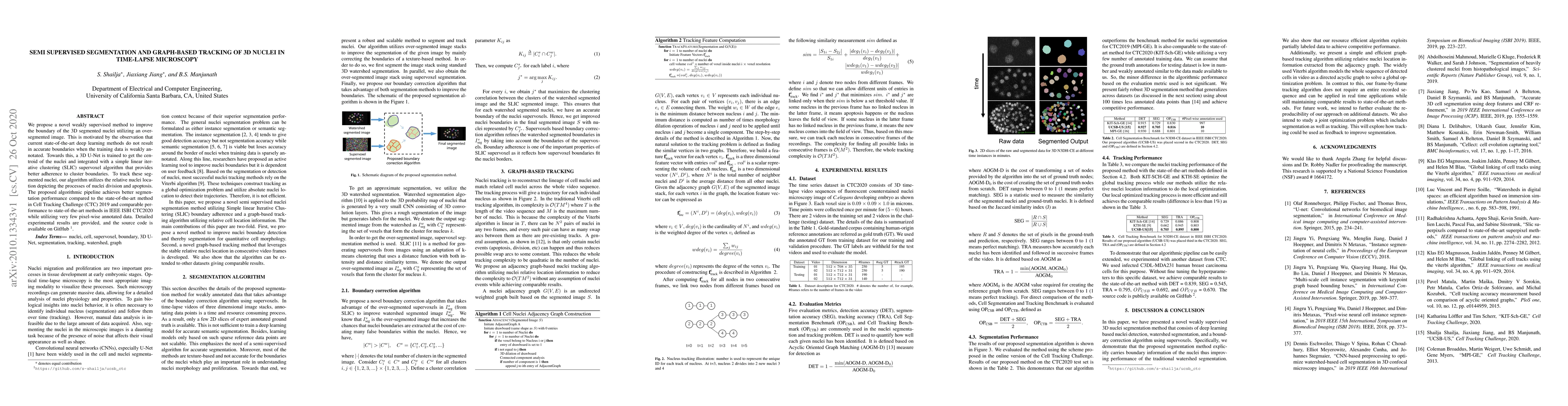 We propose a novel weakly supervised method to improve the boundary of the 3D segmented nuclei utilizing an over-segmented image. This is motivated by the observation that current state-of-the-art deep learning methods do not result in accurate boundaries when the training data is weakly annotated. Towards this, a 3D U-Net is trained to get the centroid of the nuclei and integrated with a simple linear iterative clustering (SLIC) supervoxel algorithm that provides better adherence to cluster boundaries. To track these segmented nuclei, our algorithm utilizes the relative nuclei location depicting the processes of nuclei division and apoptosis. The proposed algorithmic pipeline achieves better segmentation performance compared to the state-of-the-art method in Cell Tracking Challenge (CTC) 2019 and comparable performance to state-of-the-art methods in IEEE ISBI CTC2020 while utilizing very few pixel-wise annotated data. Detailed experimental results are provided, and the source code is available on GitHub.