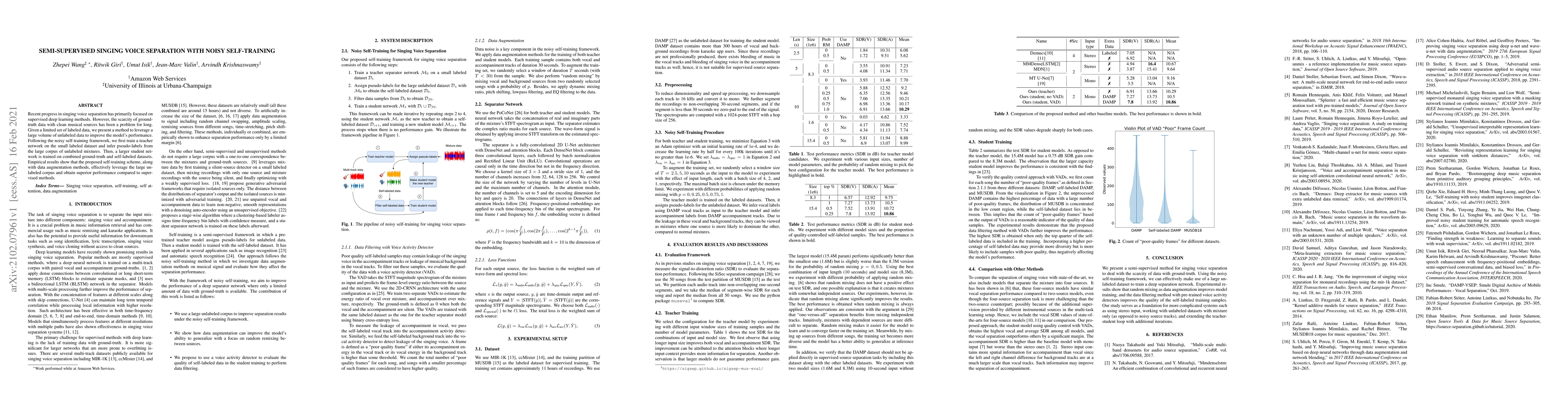 Researchers developed a method to improve singing voice separation using noisy self-training with large unlabeled datasets, achieving superior performance compared to traditional supervised methods.