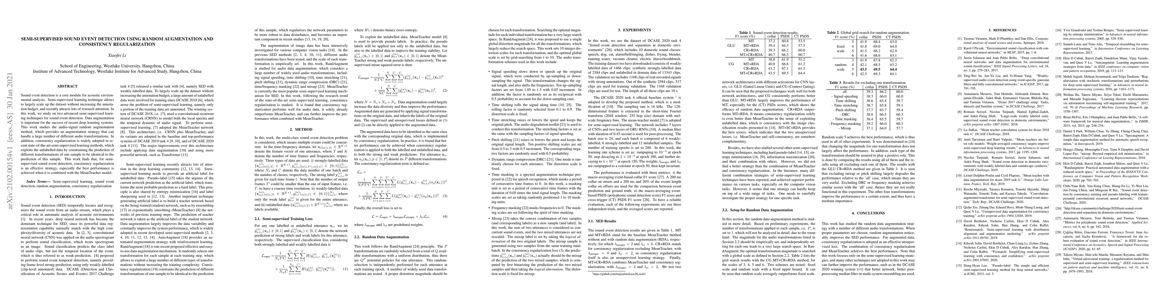 This paper explores semi-supervised sound event detection using random data augmentation and consistency regularization. It finds that combining these techniques, especially with the MeanTeacher model, significantly improves detection performance by leveraging unlabeled data.
