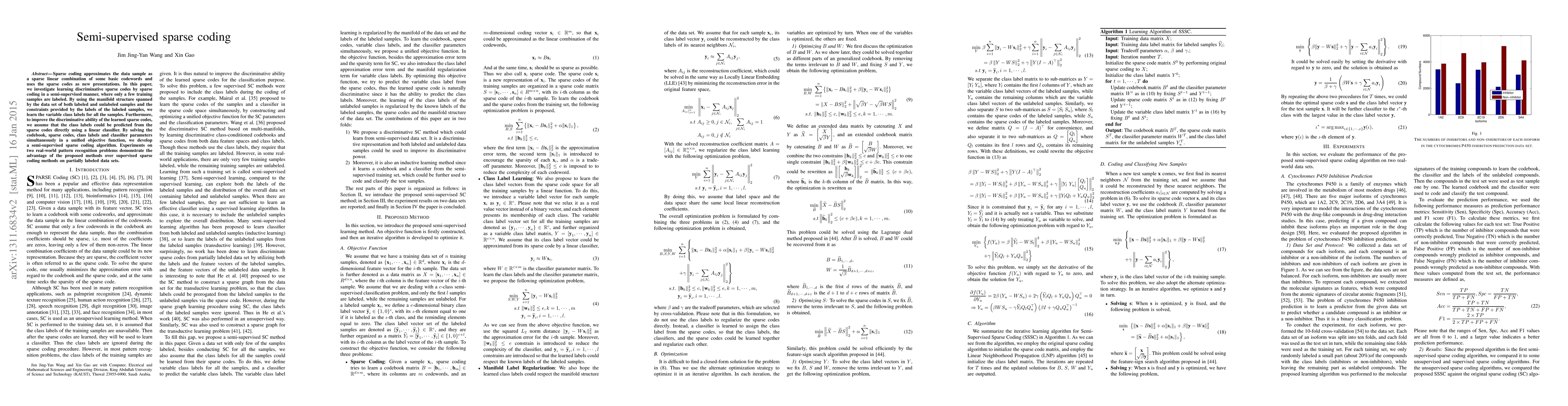 This paper proposes a semi-supervised sparse coding method that leverages both labeled and unlabeled data to learn discriminative sparse codes. The method integrates manifold structure and label constraints to infer class labels for all samples, enhancing the discriminative ability through a linear classifier.