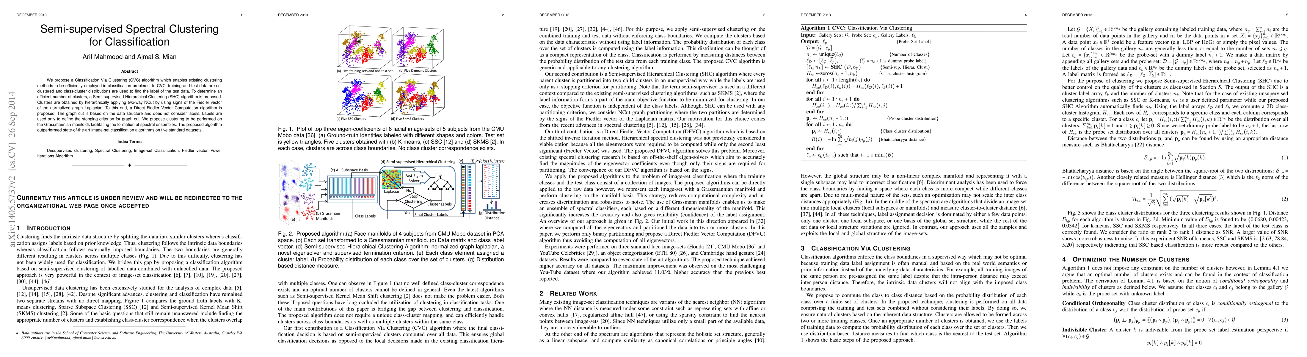 The paper introduces a Classification Via Clustering (CVC) algorithm that leverages semi-supervised spectral clustering for classification, employing a Semi-supervised Hierarchical Clustering (SHC) method to determine an optimal number of clusters. The proposed Direct Fiedler Vector Computation algorithm enhances the efficiency of the clustering process.