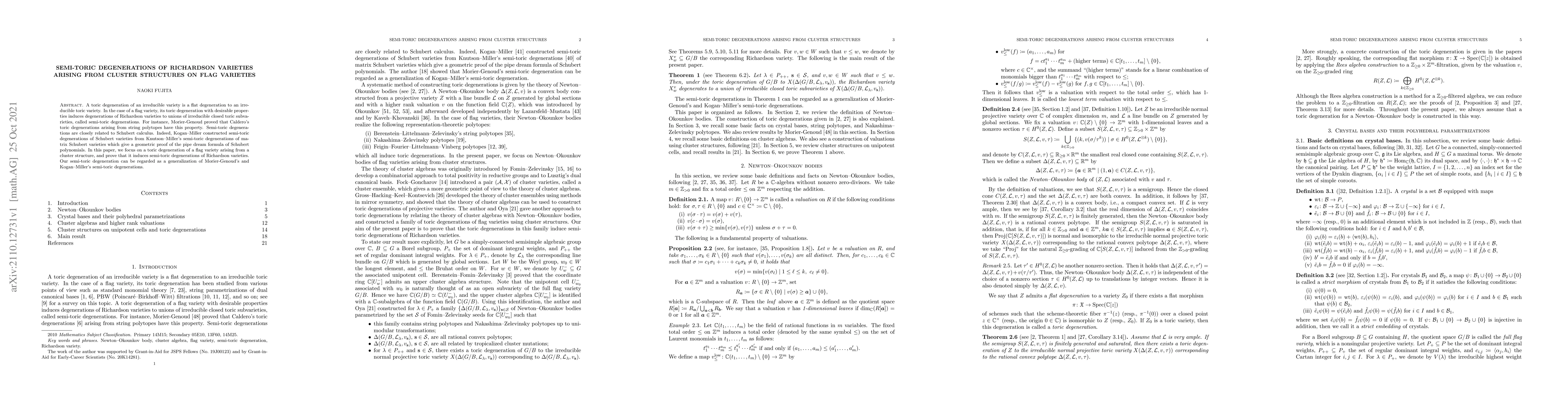 This paper investigates a toric degeneration of flag varieties originating from cluster structures, demonstrating that it induces semi-toric degenerations of Richardson varieties, thereby generalizing previous results by Morier-Genoud and Kogan-Miller. These degenerations have implications for Schubert calculus and provide a geometric proof for the pipe dream formula.
