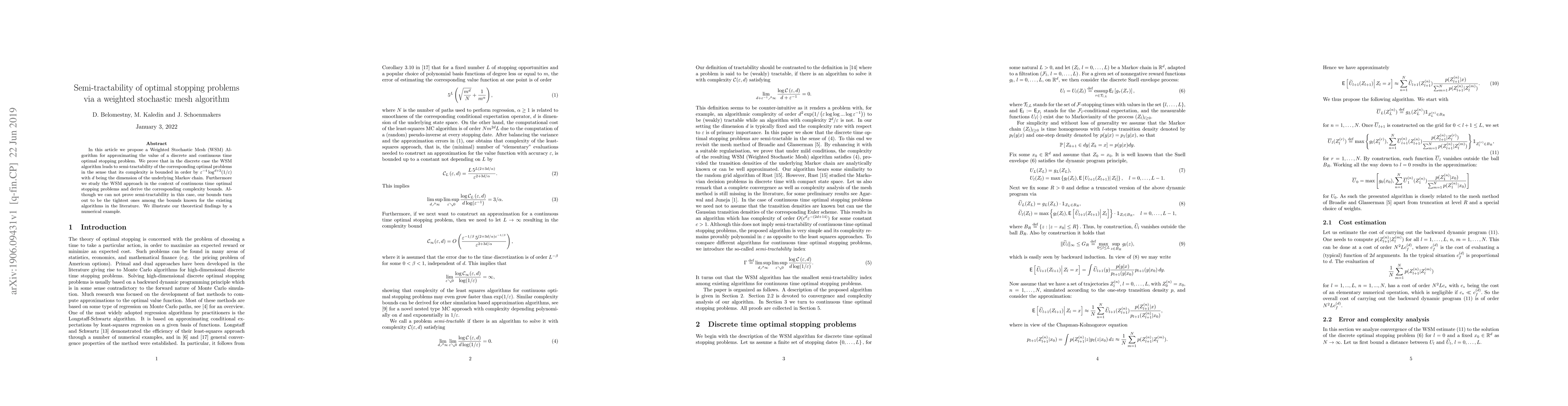 This paper introduces a Weighted Stochastic Mesh (WSM) Algorithm to approximate the value of optimal stopping problems, proving semi-tractability in the discrete case with complexity bounds. For continuous time problems, the WSM provides the tightest known complexity bounds despite not proving semi-tractability.