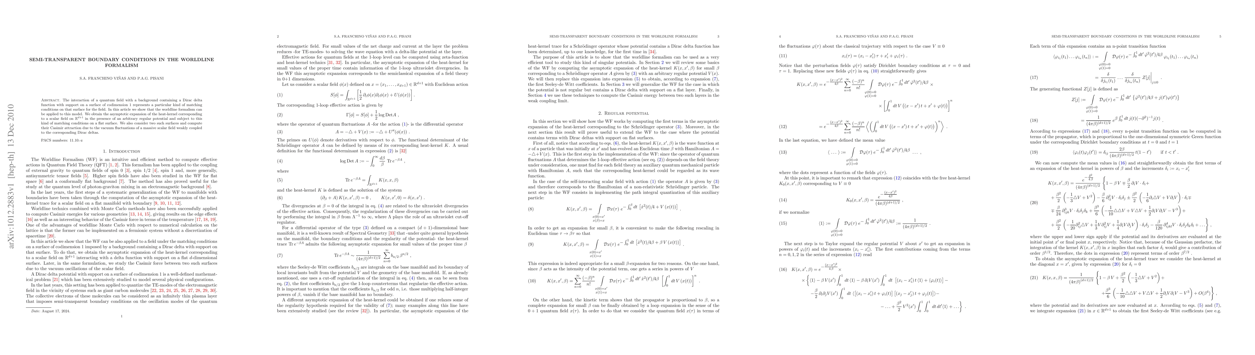 This paper demonstrates the application of the worldline formalism to quantum fields interacting with a Dirac delta function on a semi-transparent boundary, obtaining the heat-kernel expansion for a scalar field in such a setting. It also computes the Casimir attraction between two such surfaces due to vacuum fluctuations.
