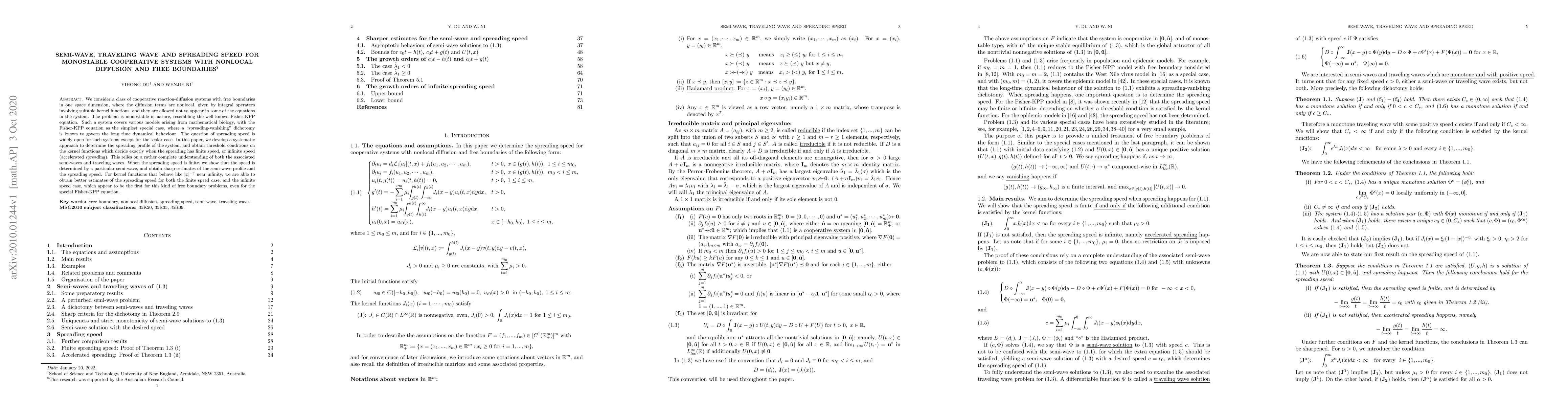 We consider a class of cooperative reaction-diffusion systems with free boundaries in one space dimension, where the diffusion terms are nonlocal, given by integral operators involving suitable kernel functions, and they are allowed not to appear in some of the equations in the system. The problem is monostable in nature, resembling the well known Fisher-KPP equation. Such a system covers various models arising from mathematical biology, with the Fisher-KPP equation as the simplest special case, where a "spreading-vanishing" dichotomy is known to govern the long time dynamical behaviour. The question of spreading speed is widely open for such systems except for the scalar case. In this paper, we develop a systematic approach to determine the spreading profile of the system, and obtain threshold conditions on the kernel functions which decide exactly when the spreading has finite speed, or infinite speed (accelerated spreading). This relies on a rather complete understanding of both the associated semi-waves and traveling waves. When the spreading speed is finite, we show that the speed is determined by a particular semi-wave, and obtain sharp estimates of the semi-wave profile and the spreading speed. For kernel functions that behave like $|x|^{-\gamma}$ near infinity, we are able to obtain better estimates of the spreading speed for both the finite speed case, and the infinite speed case, which appear to be the first for this kind of free boundary problems, even for the special Fisher-KPP equation.