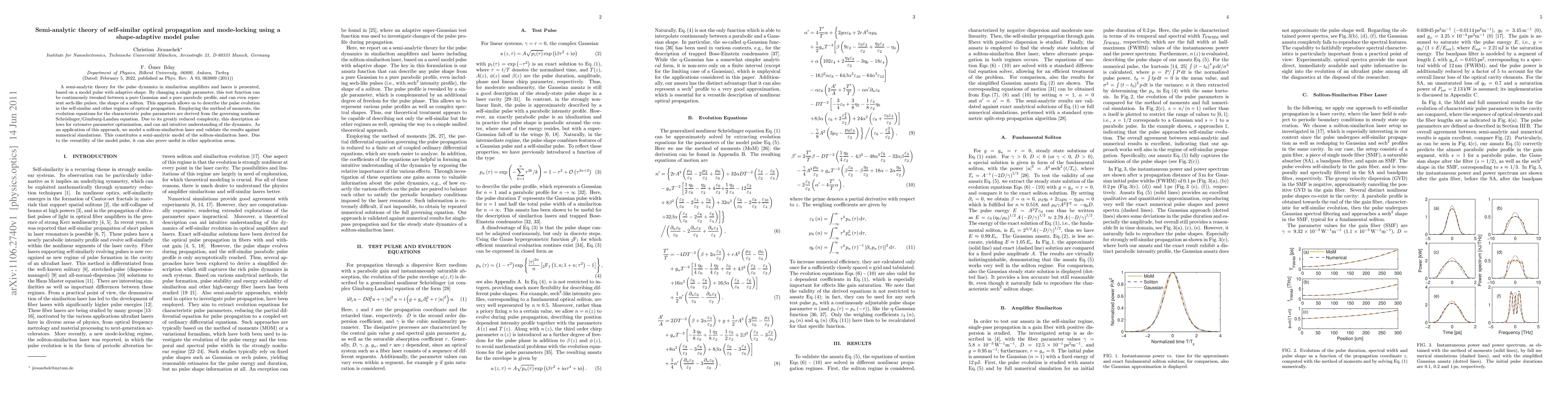 A semianalytic theory for the pulse dynamics in similariton amplifiers and lasers is presented, based on a model pulse with adaptive shape. By changing a single parameter, this test function can be continuously tweaked between a pure Gaussian and a pure parabolic profile and can even represent sech-like pulses, the shape of a soliton. This approach allows us to describe the pulse evolution in the self-similar and other regimes of optical propagation. Employing the method of moments, the evolution equations for the characteristic pulse parameters are derived from the governing nonlinear Schr\"odinger or Ginzburg-Landau equation. Due to its greatly reduced complexity, this description allows for extensive parameter optimization, and can aid intuitive understanding of the dynamics. As an application of this approach, we model a soliton-similariton laser and validate the results against numerical simulations. This constitutes a semianalytic model of the soliton-similariton laser. Due to the versatility of the model pulse, it can also prove useful in other application areas.