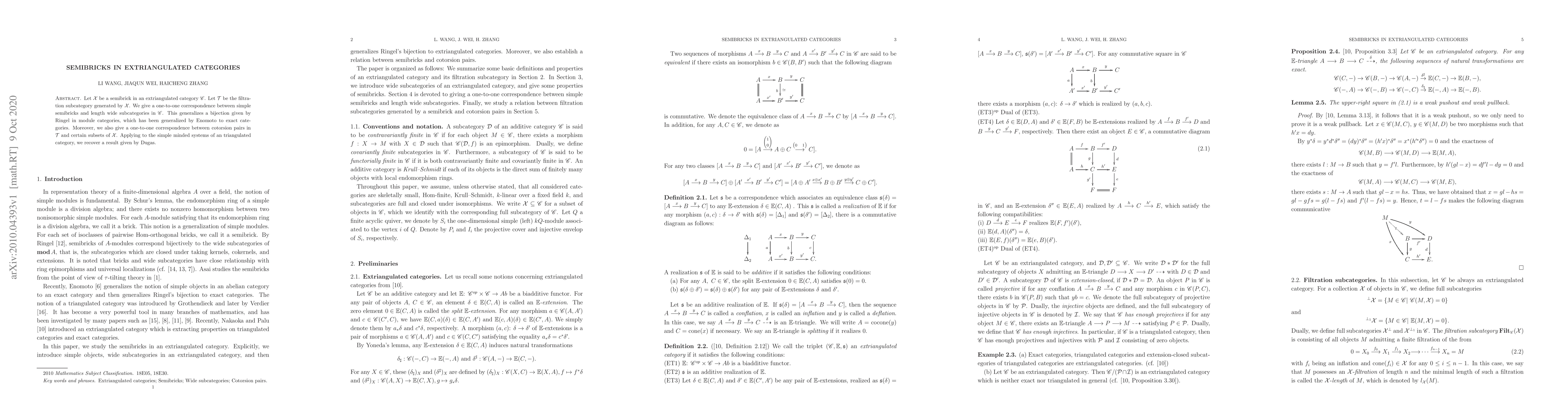 Let $\mathcal{X}$ be a semibrick in an extriangulated category $\mathscr{C}$. Let $\mathcal{T}$ be the filtration subcategory generated by $\mathcal{X}$. We give a one-to-one correspondence between simple semibricks and length wide subcategories in $\mathscr{C}$. This generalizes a bijection given by Ringel in module categories, which has been generalized by Enomoto to exact categories. Moreover, we also give a one-to-one correspondence between cotorsion pairs in $\mathcal{T}$ and certain subsets of $\mathcal{X}$. Applying to the simple minded systems of an triangulated category, we recover a result given by Dugas.