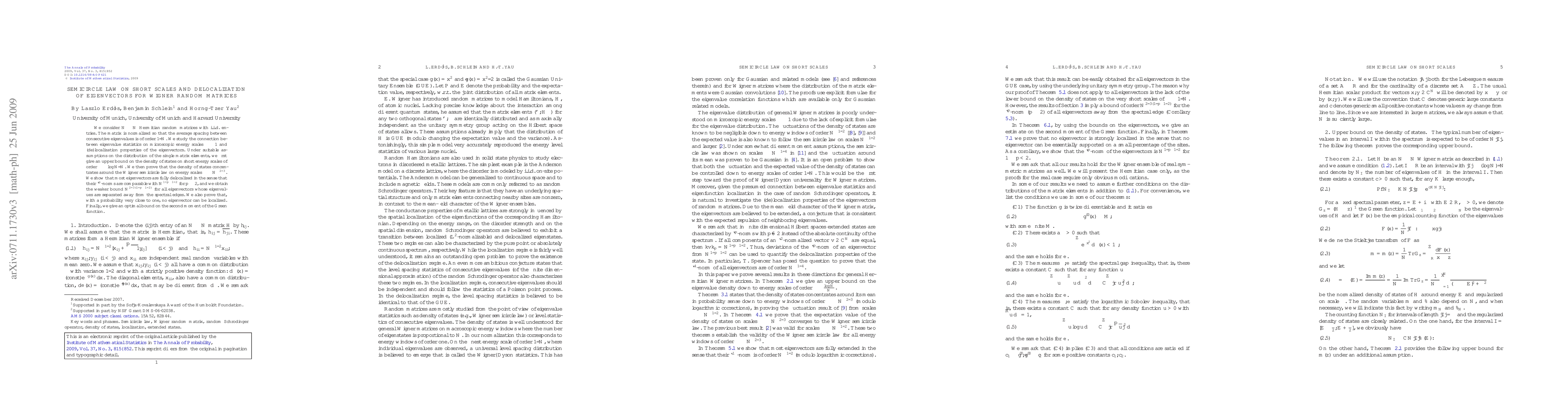 We consider $N\times N$ Hermitian random matrices with i.i.d. entries. The matrix is normalized so that the average spacing between consecutive eigenvalues is of order $1/N$. We study the connection between eigenvalue statistics on microscopic energy scales $\eta\ll1$ and (de)localization properties of the eigenvectors. Under suitable assumptions on the distribution of the single matrix elements, we first give an upper bound on the density of states on short energy scales of order $\eta \sim\log N/N$. We then prove that the density of states concentrates around the Wigner semicircle law on energy scales $\eta\gg N^{-2/3}$. We show that most eigenvectors are fully delocalized in the sense that their $\ell^p$-norms are comparable with $N^{{1}/{p}-{1}/{2}}$ for $p\ge2$, and we obtain the weaker bound $N^{{2}/{3}({1}/{p}-{1}/{2})}$ for all eigenvectors whose eigenvalues are separated away from the spectral edges. We also prove that, with a probability very close to one, no eigenvector can be localized. Finally, we give an optimal bound on the second moment of the Green function.