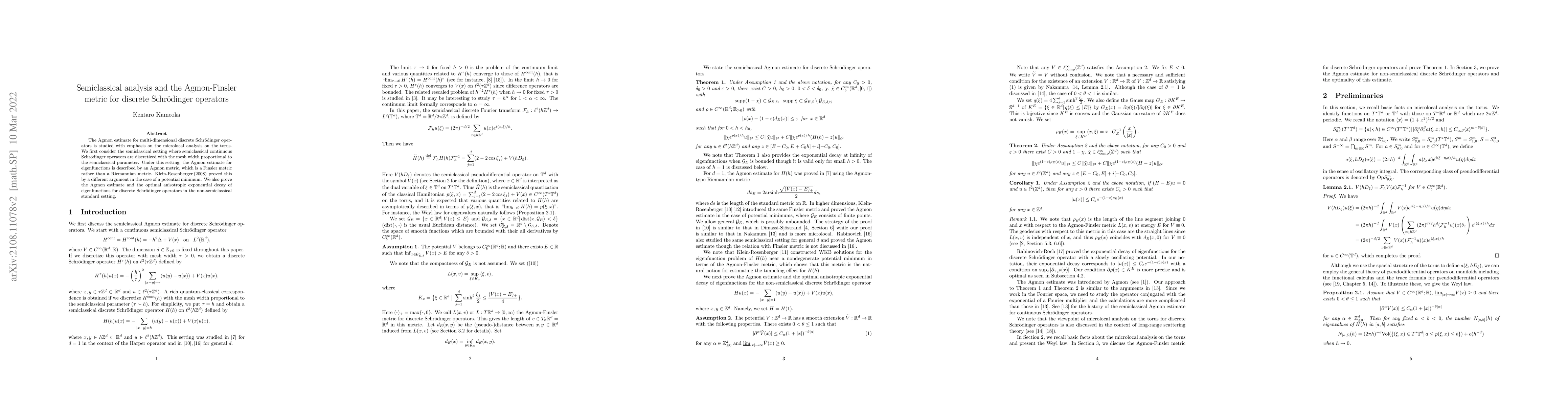 The Agmon estimate for multi-dimensional discrete Schr\"{o}dinger operators is studied with emphasis on the microlocal analysis on the torus. We first consider the semiclassical setting where semiclassical continuous Schr\"{o}dinger operators are discretized with the mesh width proportional to the semiclassical parameter. Under this setting, the Agmon estimate for eigenfunctions is described by an Agmon metric, which is a Finsler metric rather than a Riemannian metric. Klein-Rosenberger (2008) proved this by a different argument in the case of a potential minimum. We also prove the Agmon estimate and the optimal anisotropic exponential decay of eigenfunctions for discrete Schr\"{o}dinger operators in the non-semiclassical standard setting.