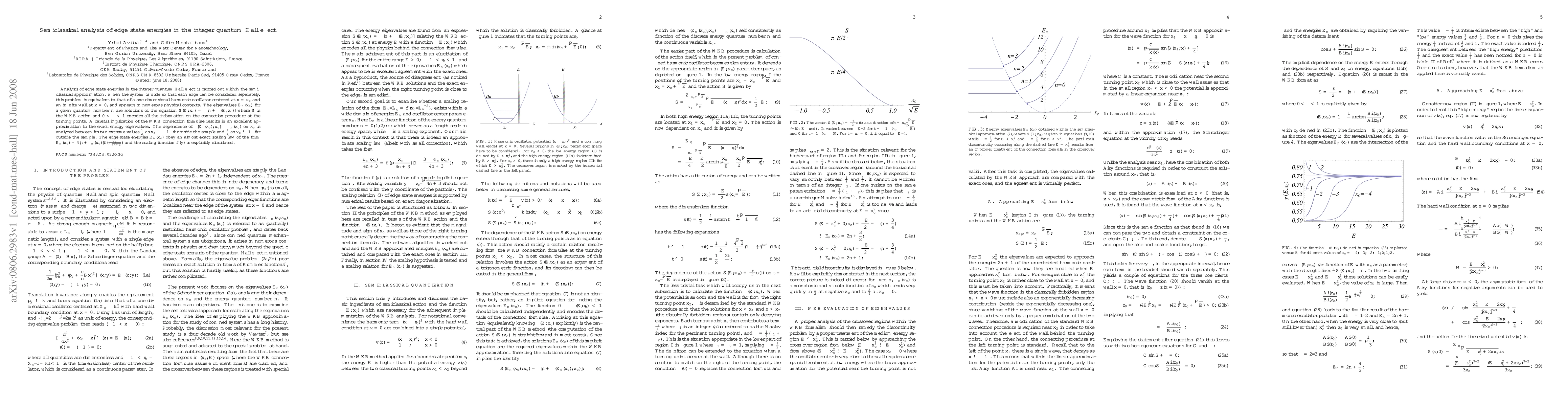 Analysis of edge-state energies in the integer quantum Hall effect is carried out within the semiclassical approximation. When the system is wide so that each edge can be considered separatly, this problem is equivalent to that of a one dimensional harmonic oscillator centered at x=x_c and an infinite wall at x=0, and appears in numerous physical contexts. The eigenvalues E_n(x_c) for a given quantum number n are solutions of the equation S(E,x_c)=\pi [n+ \gamma(E,x_c)] where S is the WKB action and 0<\gamma<1 encodes all the information on the connection procedure at the turning points. A careful implication of the WKB connection formulae results in an excellent approximation to the exact energy eigenvalues. The dependence of \gamma [E_n(x_c),x_c] \equiv \gamma_c (x_c) on x_c is analyzed between its two extreme values 1/2 as x_c goes to -infinity far inside the sample and 3/4 as x_c goes to infinity far outside the sample. The edge-state energies E_n(x_c) obey an almost exact scaling law of the form E_n(x_c)=4 [n+\gamma_n(x_c)] f(x_c/4 n +3) and the scaling function f(y) is explicitly elucidated