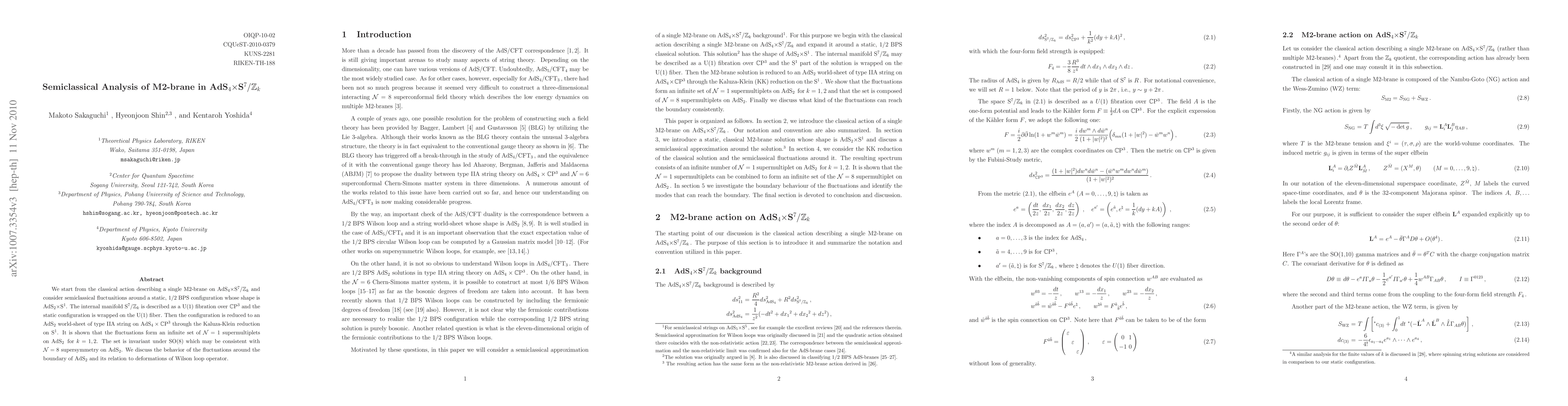 This paper analyzes semiclassical fluctuations around a static M2-brane configuration in AdS_4 x S^7/Z_k, showing that these fluctuations form N=1 supermultiplets invariant under SO(8). The study relates the behavior of these fluctuations near the boundary of AdS_2 to deformations of the Wilson loop operator.