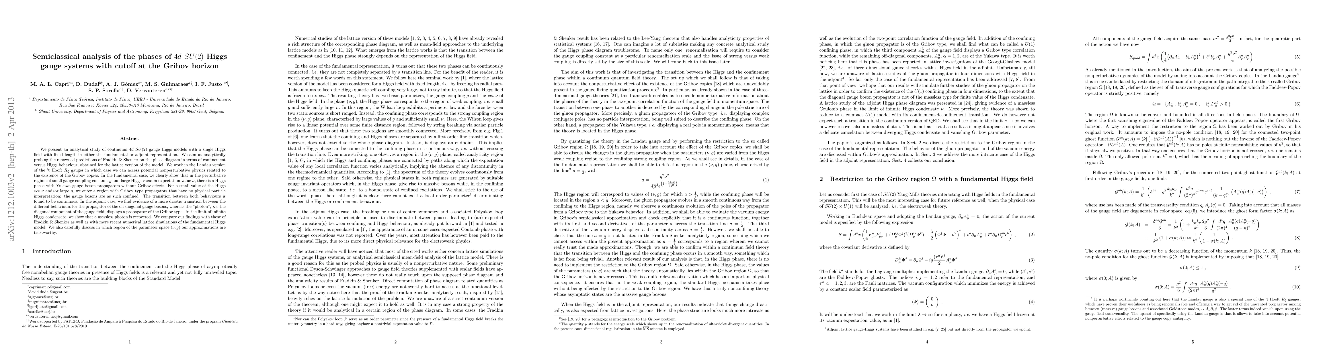 We present an analytical study of continuum 4d SU(2) gauge Higgs models with a single Higgs field with fixed length in either the fundamental or adjoint representation. We aim at analytically probing the renowned predictions of Fradkin & Shenker on the phase diagram in terms of confinement versus Higgs behaviour, obtained for the lattice version of the model. We work in the Landau version of the 't Hooft R_\xi gauges in which case we can access potential nonperturbative physics related to the existence of the Gribov copies. In the fundamental case, we clearly show that in the perturbative regime of small gauge coupling constant g and large Higgs vacuum expectation value v, there is a Higgs phase with Yukawa gauge boson propagators without Gribov effects. For a small value of the Higgs vev v and/or large g, we enter a region with Gribov type propagators that have no physical particle interpretation: the gauge bosons are as such confined. The transition between both behaviours is found to be continuous. In the adjoint case, we find evidence of a more drastic transition between the different behaviours for the propagator of the off-diagonal gauge bosons, whereas the "photon", i.e. the diagonal component of the gauge field, displays a propagator of the Gribov type. In the limit of infinite Higgs condensate, we show that a massless photon is recovered. We compare our findings with those of Fradkin & Shenker as well as with more recent numerical lattice simulations of the fundamental Higgs model. We also carefully discuss in which region of the parameter space (v,g) our approximations are trustworthy.