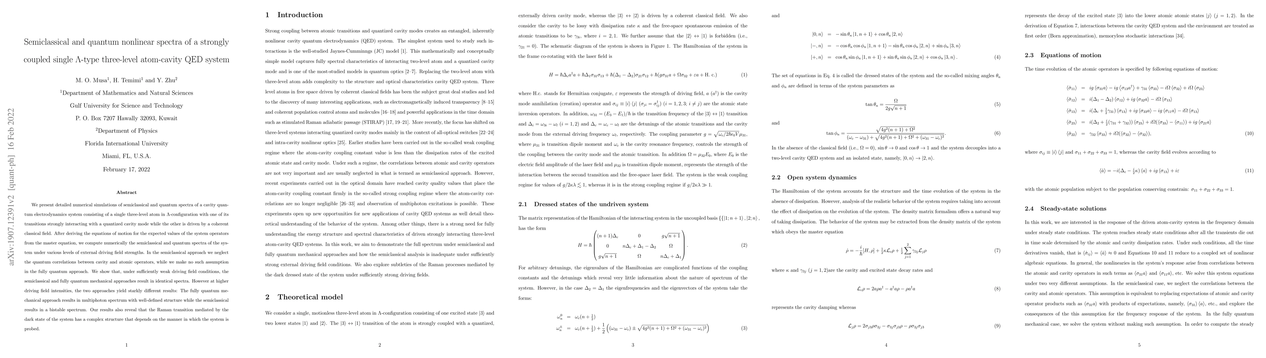 Researchers simulate the spectra of a strongly coupled atom-cavity QED system under different driving field strengths, finding that classical and quantum approaches produce identical results at weak fields but diverge at high intensities.