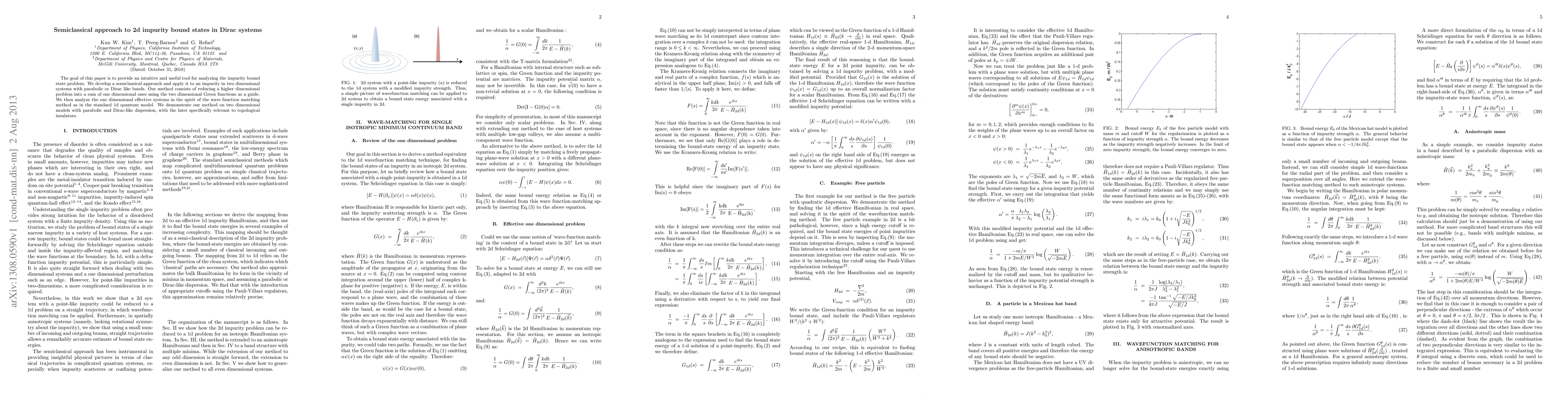 The goal of this paper is to provide an intuitive and useful tool for analyzing the impurity bound state problem. We develop a semiclassical approach and apply it to an impurity in two dimensional systems with parabolic or Dirac like bands. Our method consists of reducing a higher dimensional problem into a sum of one dimensional ones using the two dimensional Green functions as a guide. We then analyze the one dimensional effective systems in the spirit of the wave function matching method as in the standard 1d quantum model. We demonstrate our method on two dimensional models with parabolic and Dirac-like dispersion, with the later specifically relevant to topological insulators.