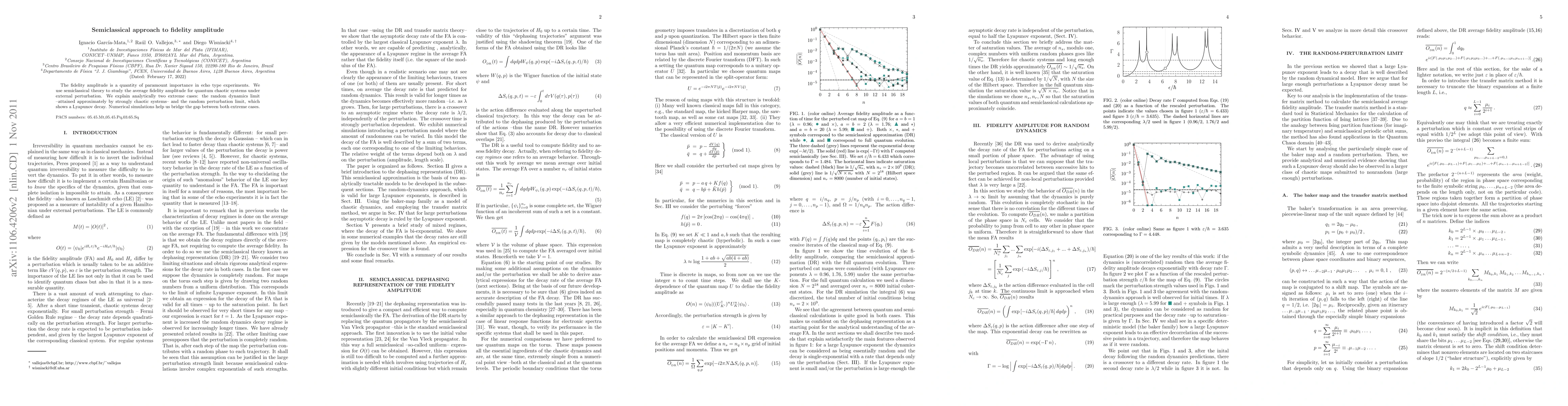 This paper employs semiclassical theory to analyze the average fidelity amplitude in quantum chaotic systems under external perturbations, explaining analytically two extreme cases: the random dynamics limit and the random perturbation limit, with numerical simulations bridging the gap between them.