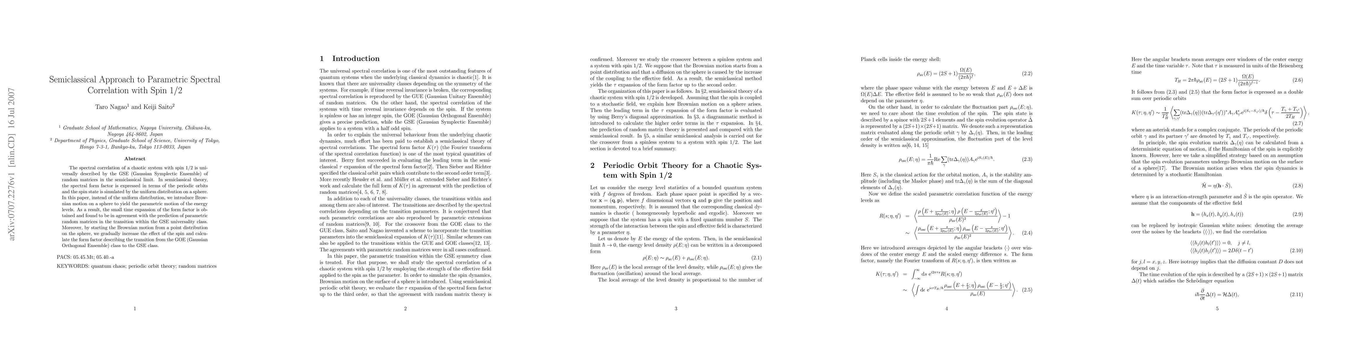 This paper explores a semiclassical approach to parametric spectral correlation in chaotic systems with spin 1/2, replacing the uniform distribution with Brownian motion on a sphere. The study finds that this approach yields a small time expansion of the spectral form factor consistent with parametric random matrices, and it describes the transition from GOE to GSE universality classes.