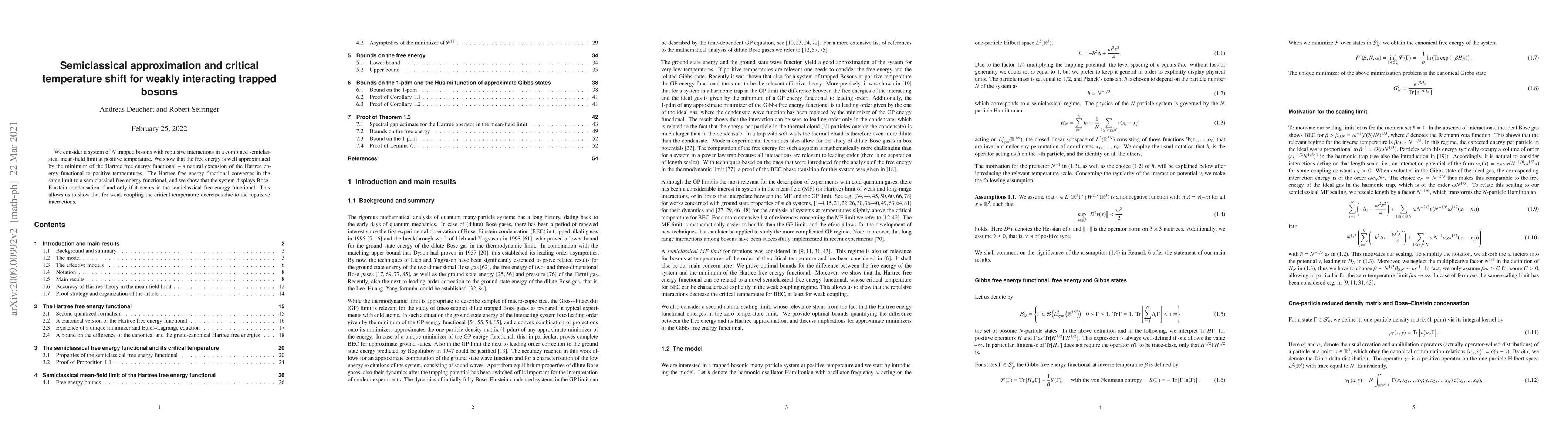 This paper investigates a system of weakly interacting trapped bosons at positive temperature, demonstrating that the free energy is well approximated by the minimum of the Hartree free energy functional. It finds that Bose-Einstein condensation occurs if and only if it happens in the semiclassical free energy functional, revealing a decrease in critical temperature for weak coupling due to repulsive interactions.