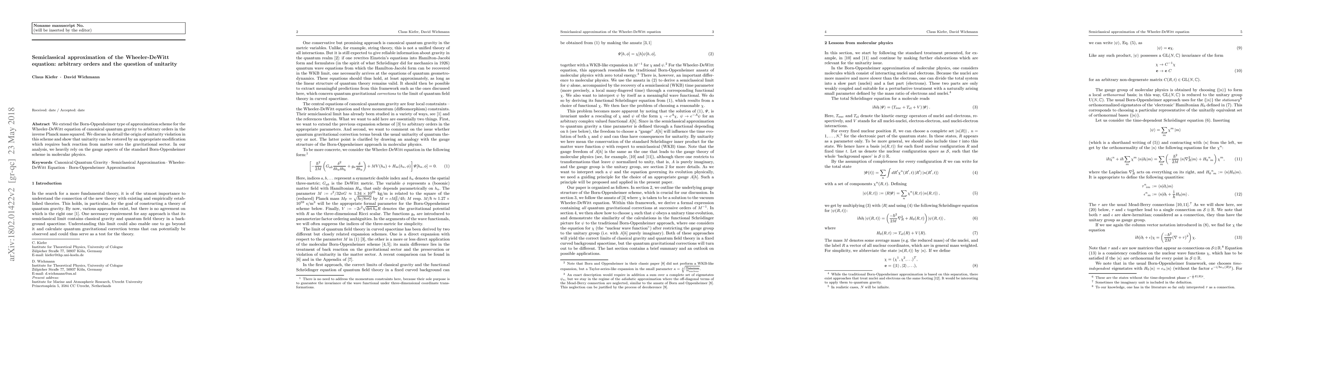 We extend the Born-Oppenheimer type of approximation scheme for the Wheeler-DeWitt equation of canonical quantum gravity to arbitrary orders in the inverse Planck mass squared. We discuss in detail the origin of unitarity violation in this scheme and show that unitarity can be restored by an appropriate modification which requires back reaction from matter onto the gravitational sector. In our analysis, we heavily rely on the gauge aspects of the standard Born-Oppenheimer scheme in molecular physics.